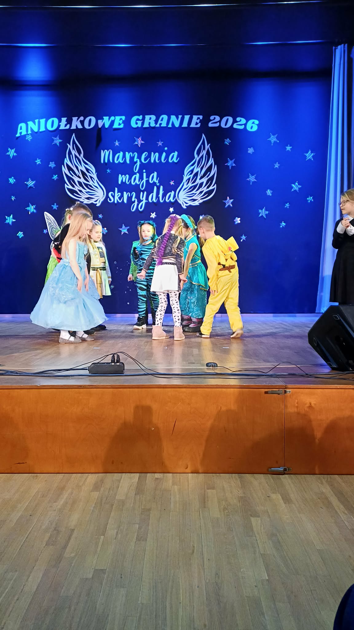 W miniony piątek w Kosakowskim Centrum Kultury odbył się coroczny koncert " Aniołkowe granie" gdzie nasze dzieci występowały na dużej scenie przed ogromną popularnością, gdzie wykonały piosenkę - Marzenia jak motyle. Przybyłe dzieci spisały się na medal, swoim zachowaniem, umiejętnościami i odwagą. Bardzo dziękujemy za przybycie i wspieranie dzieci w takich przedsięwzięciach.