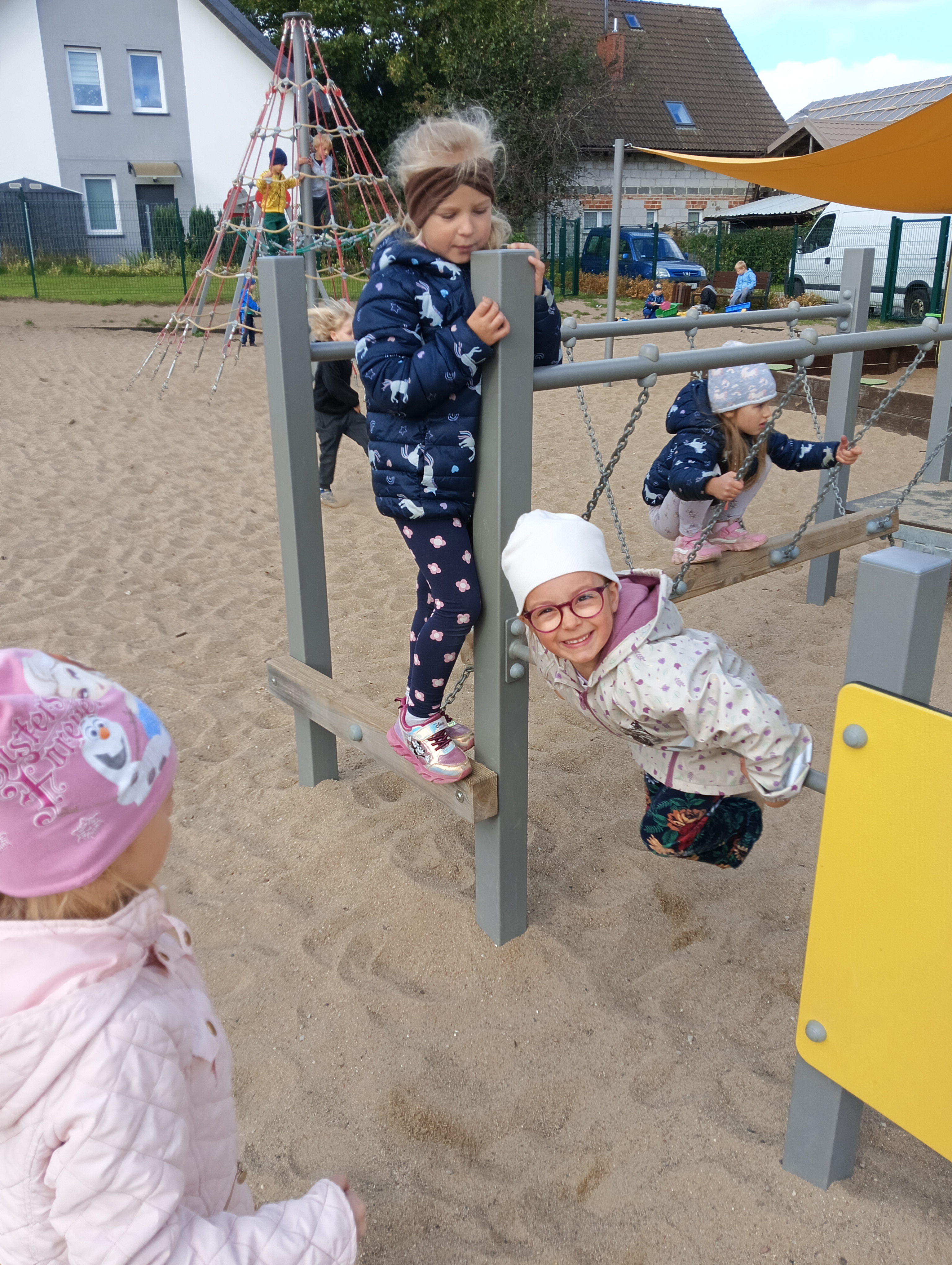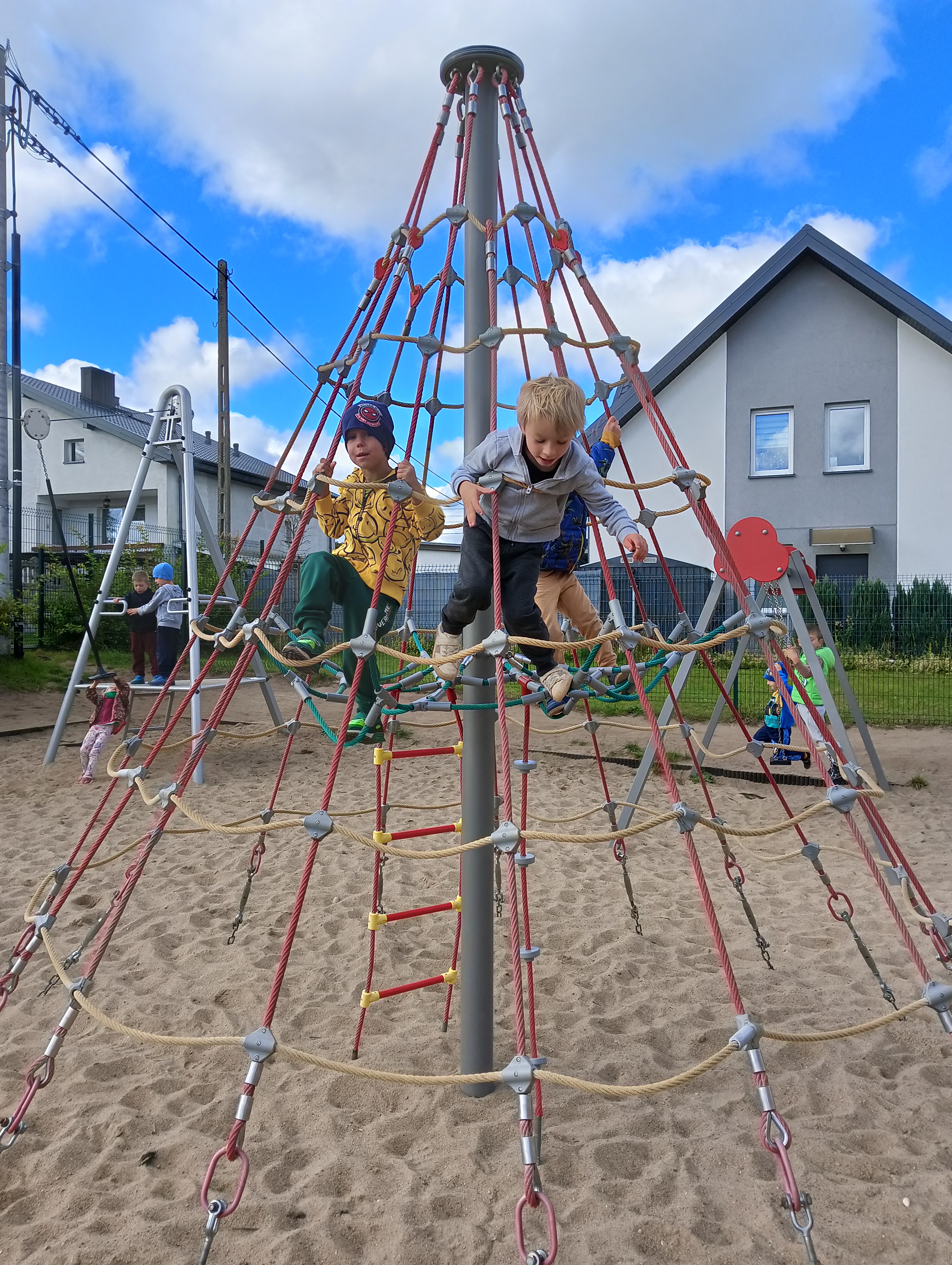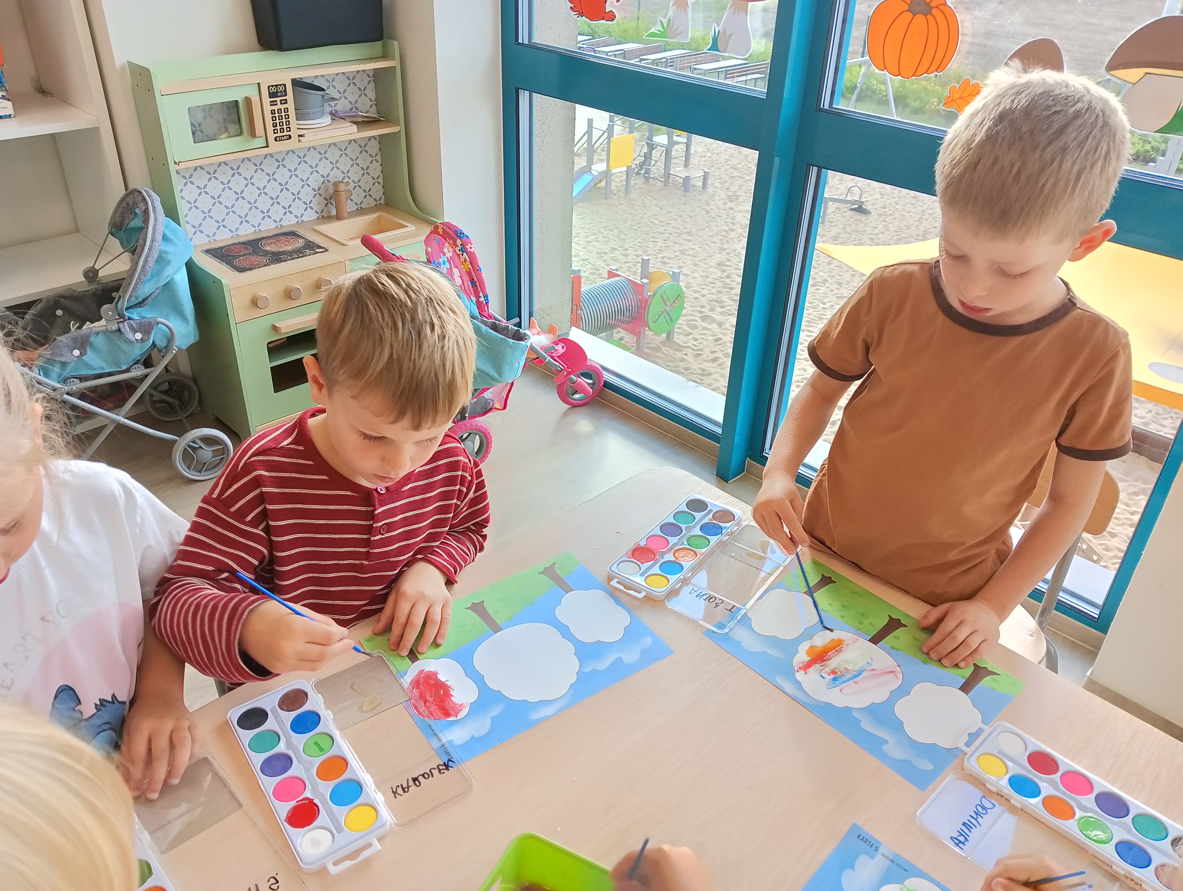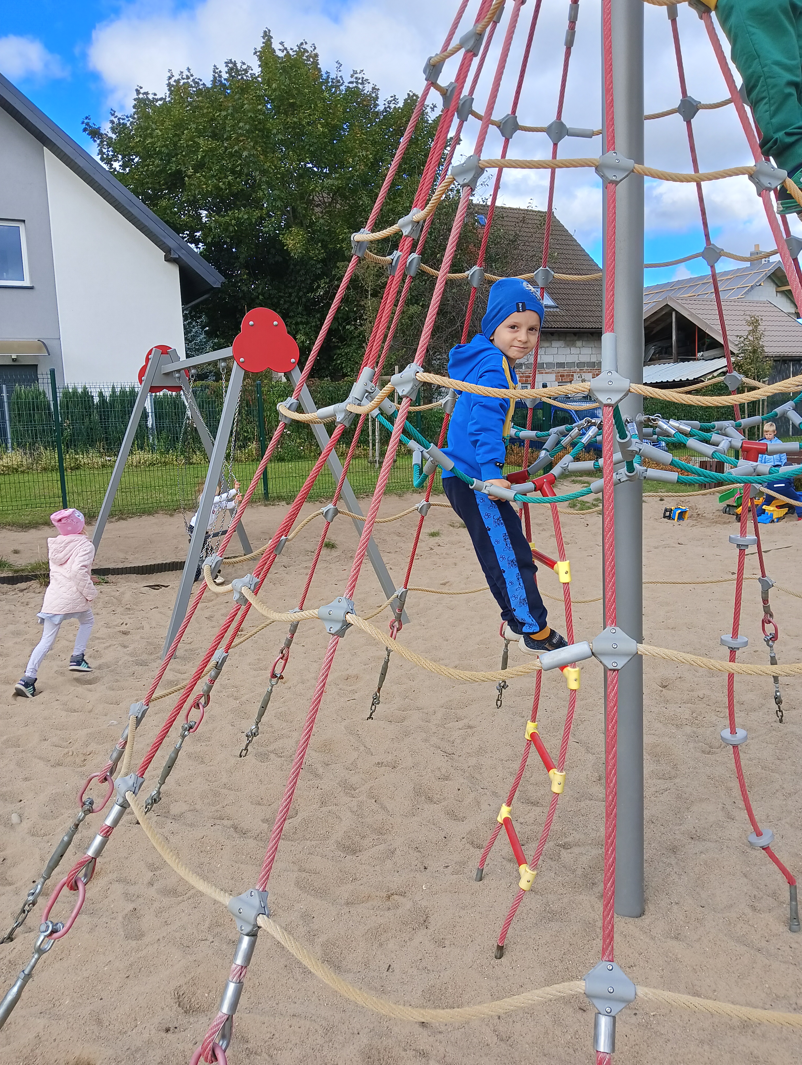Jesienne drzewa i zabawy na placu zabaw