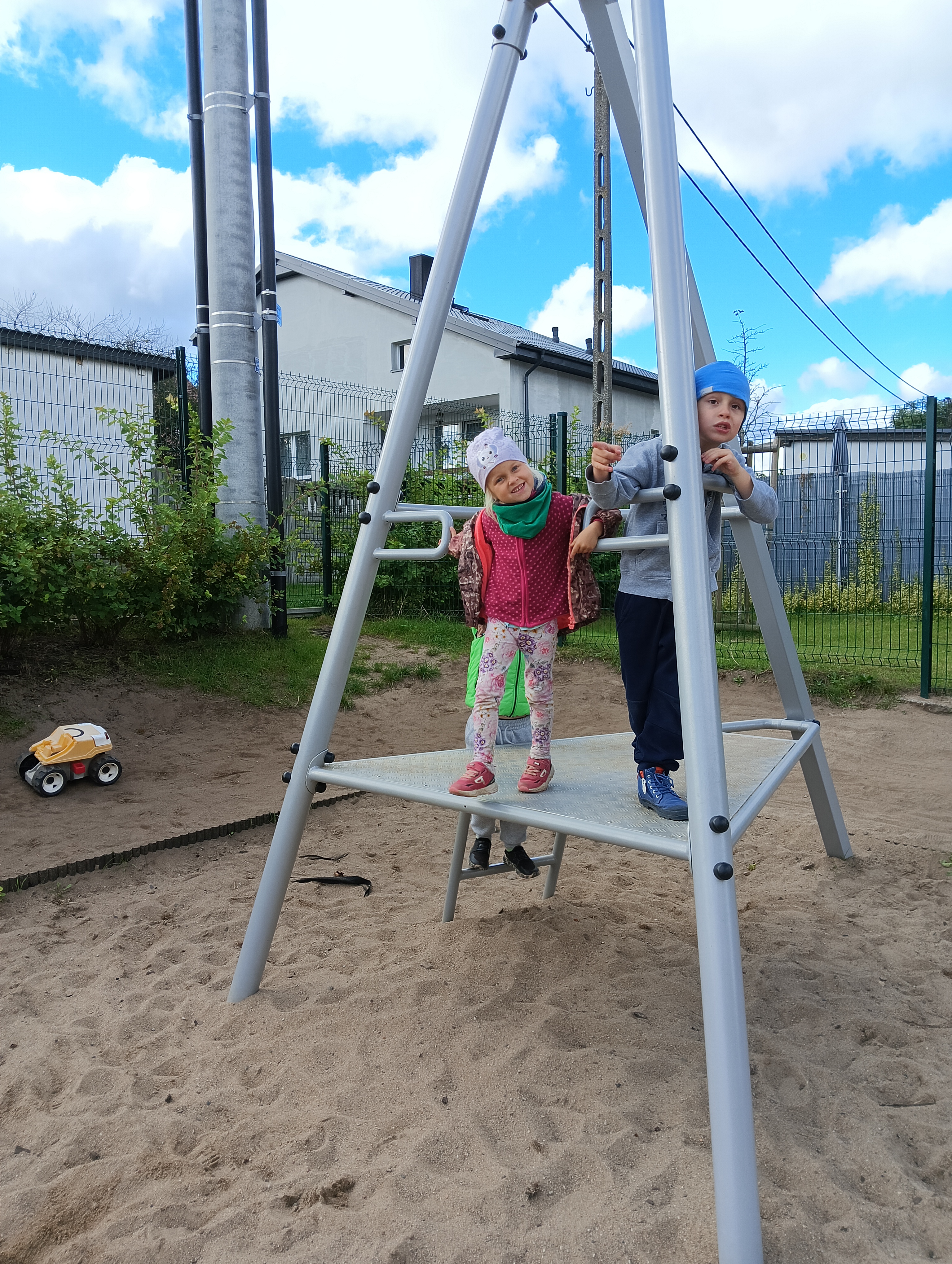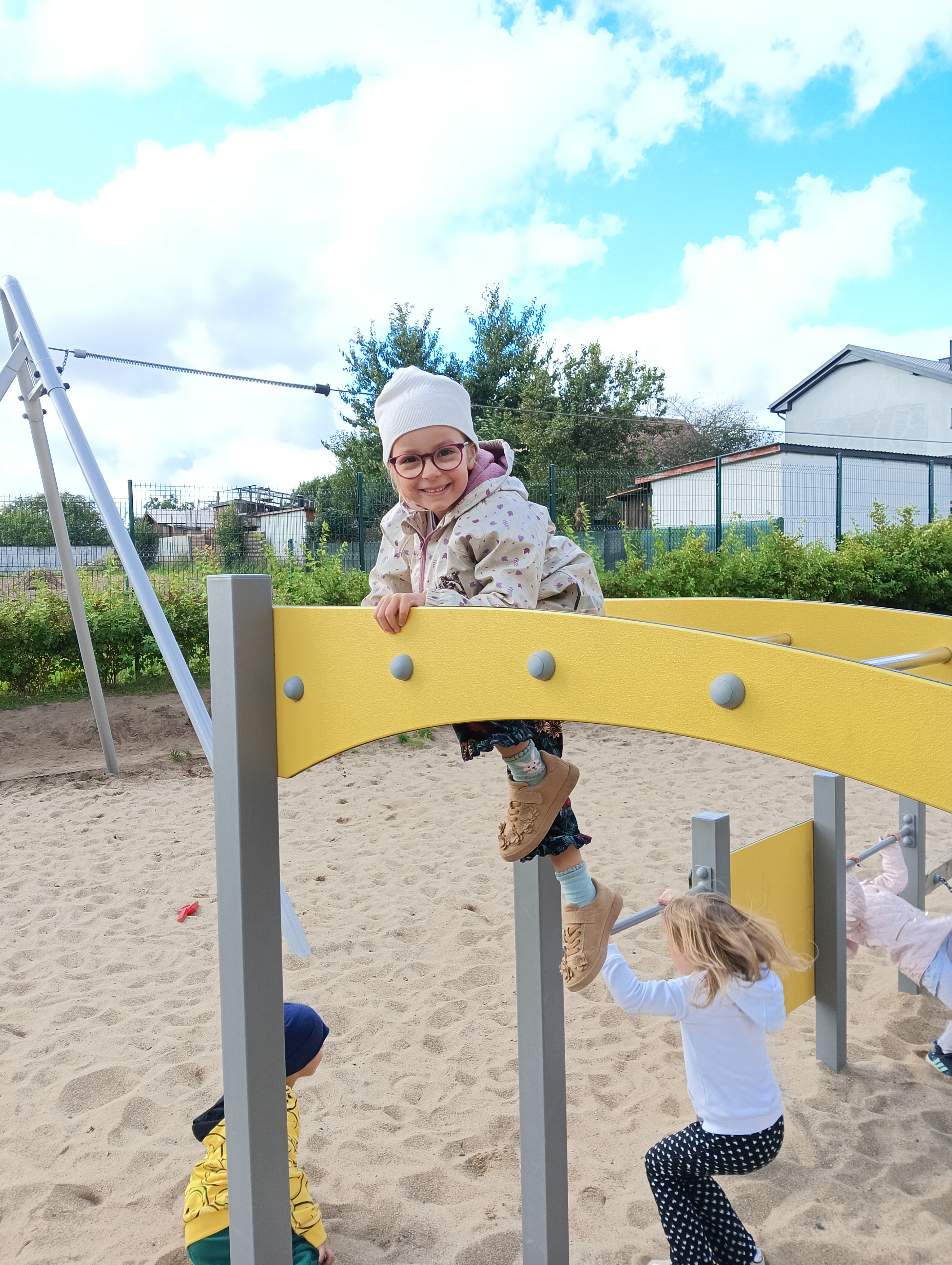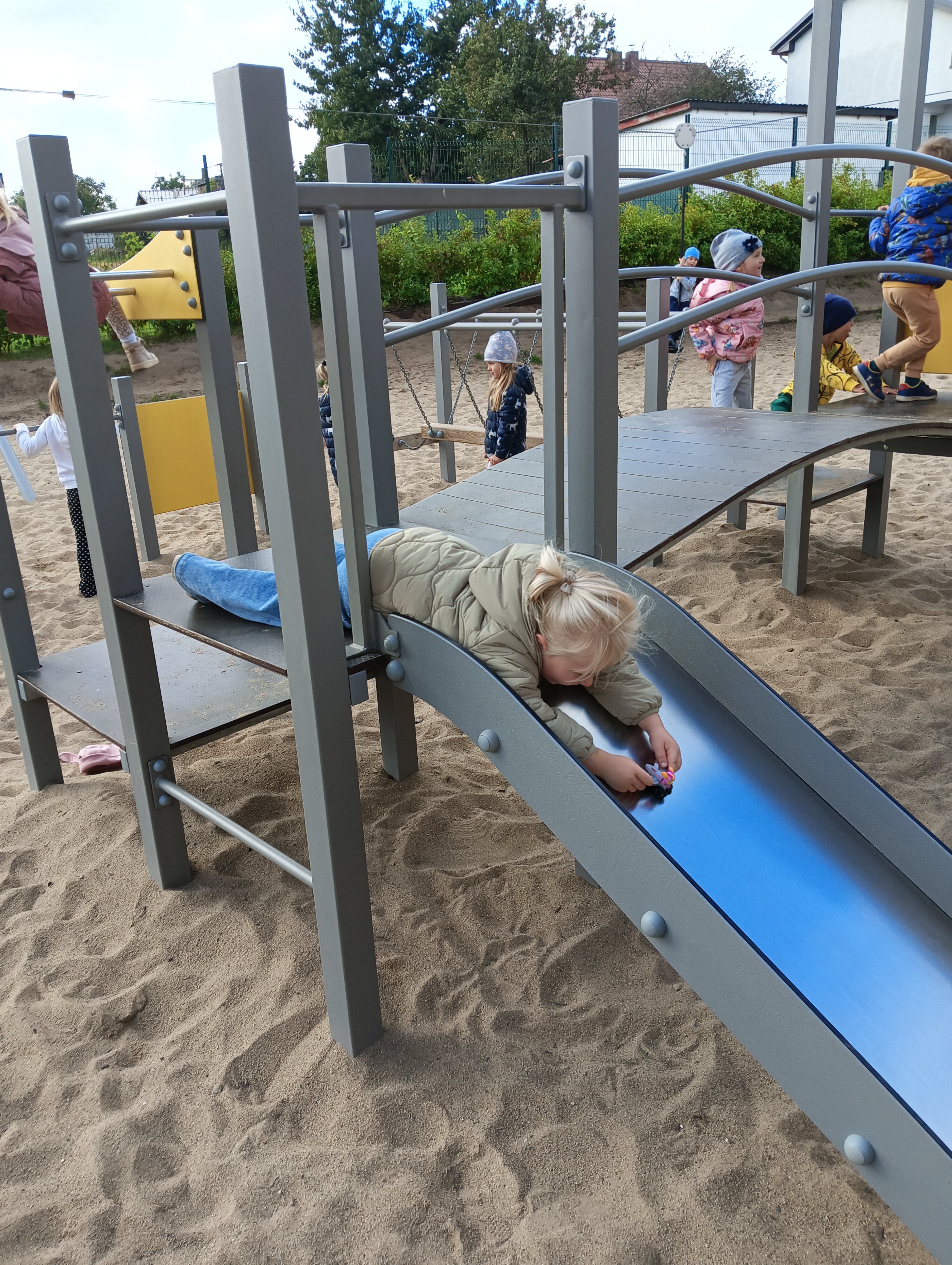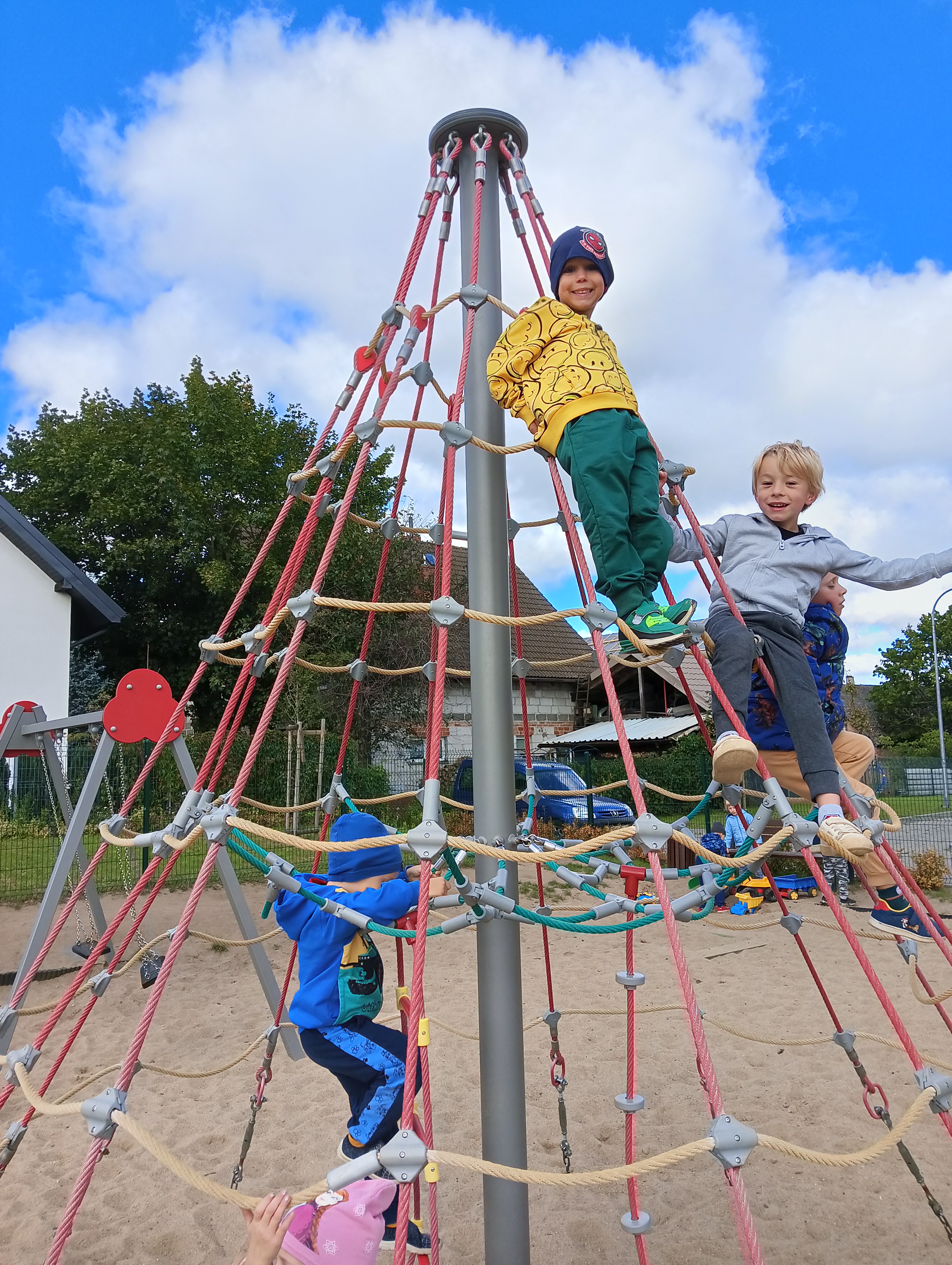 Jesienne drzewa i zabawy na placu zabaw