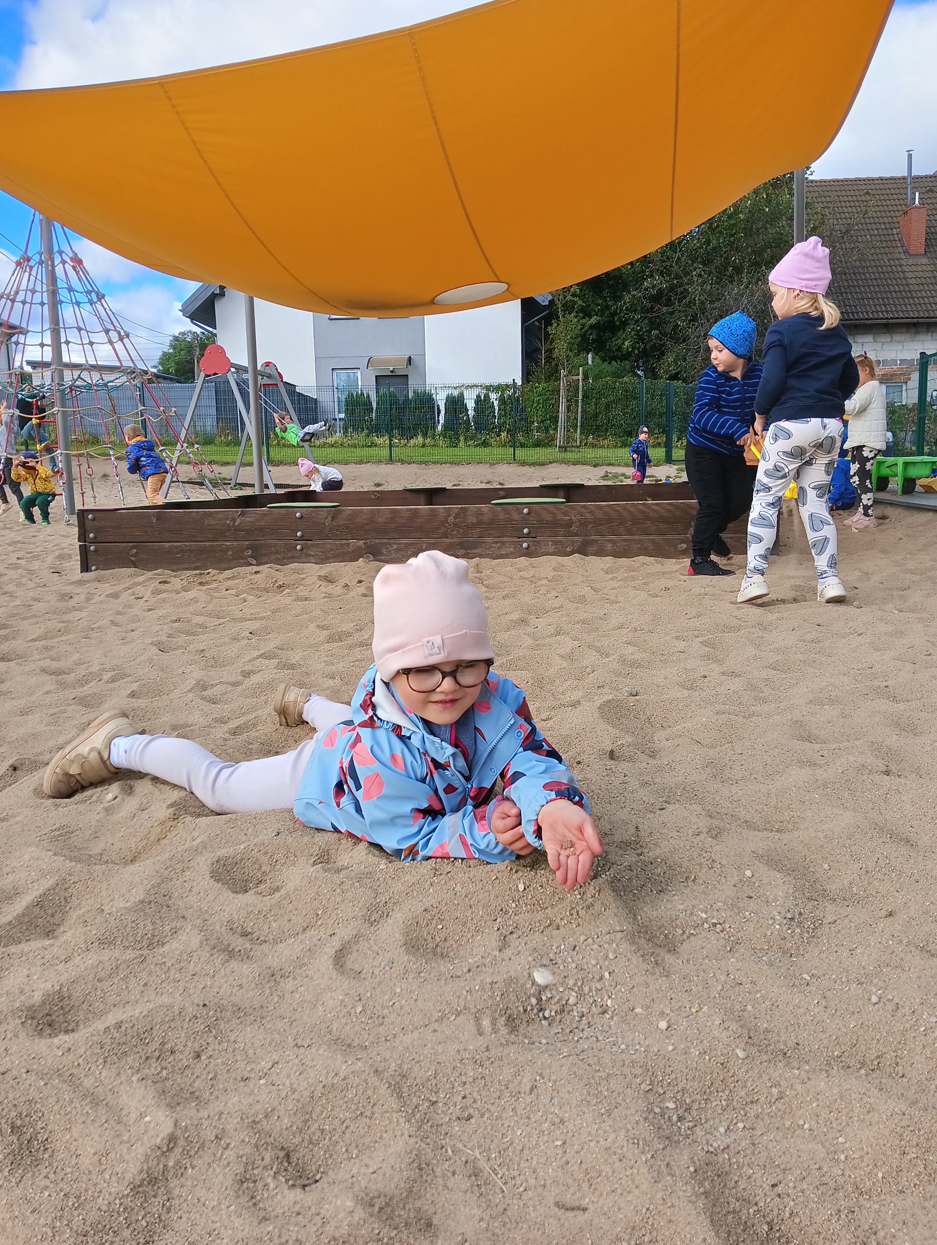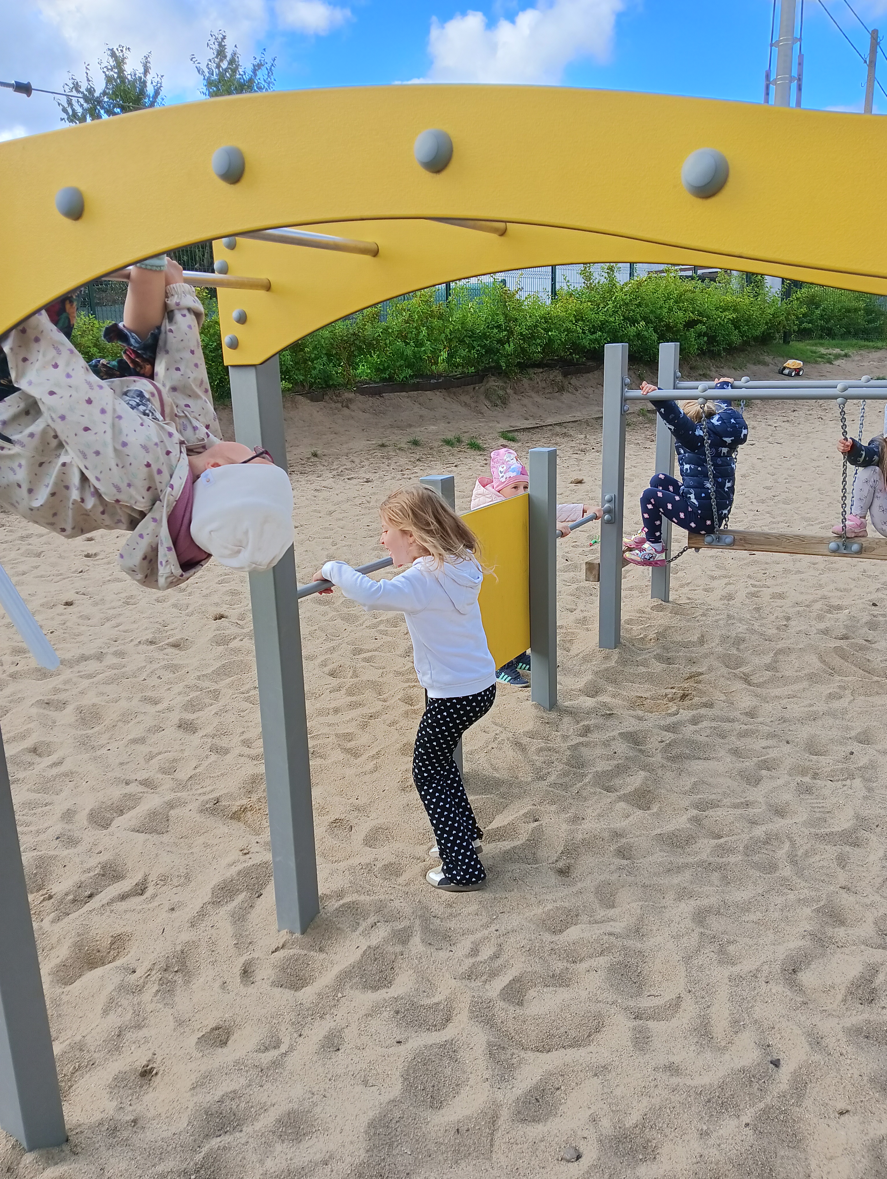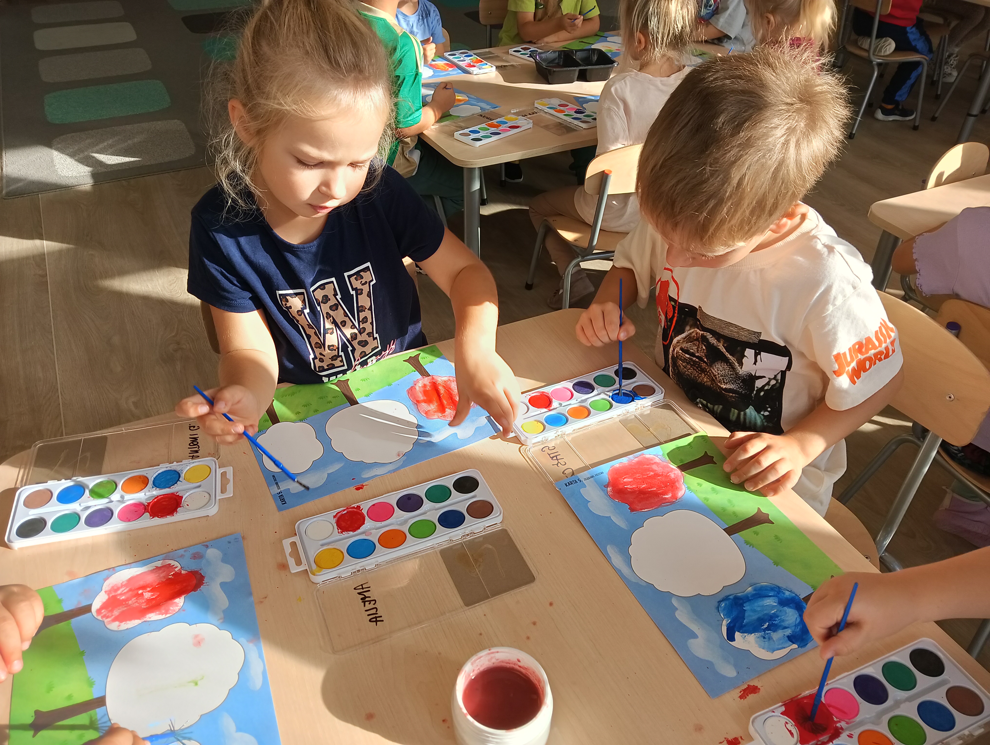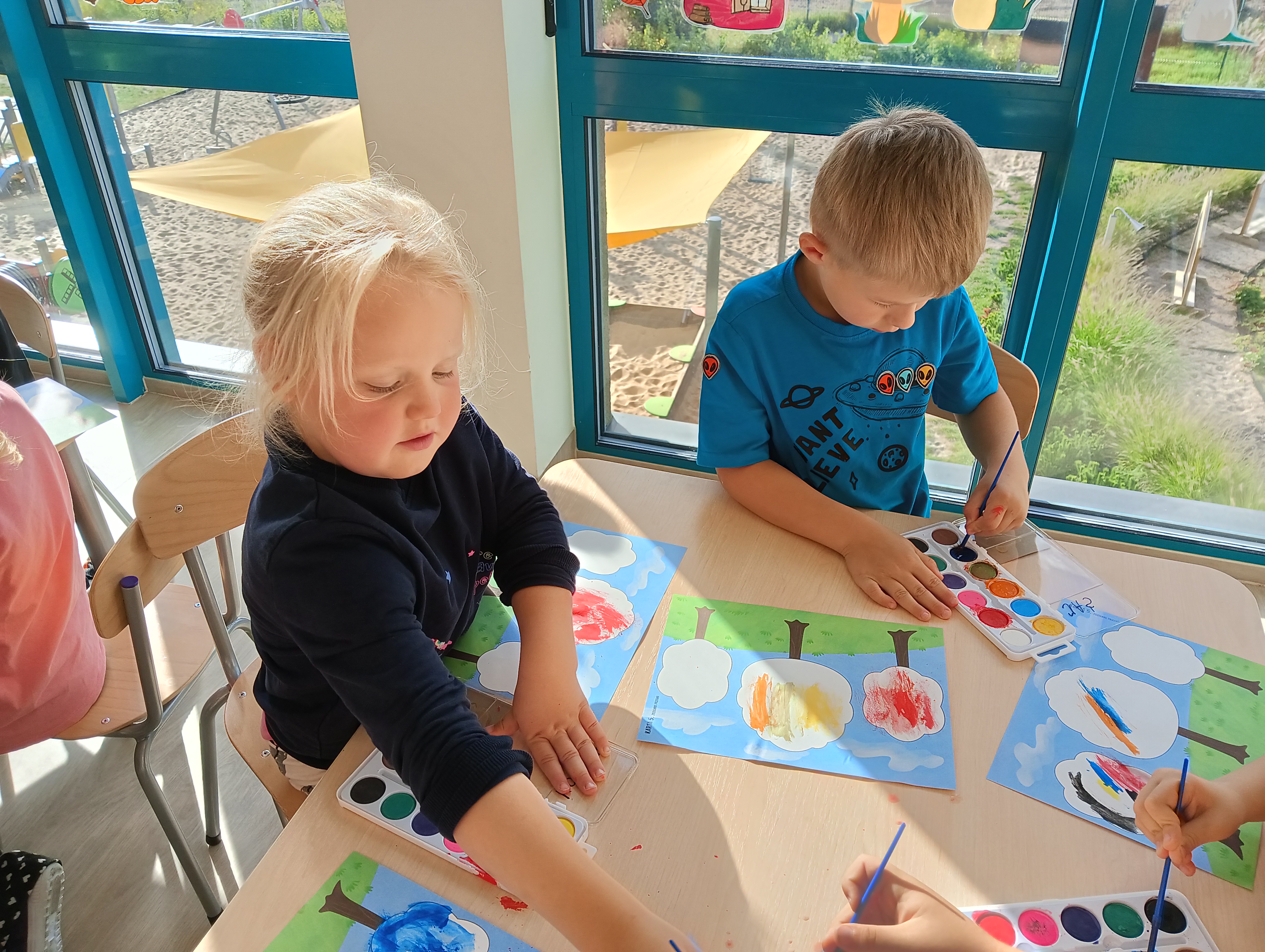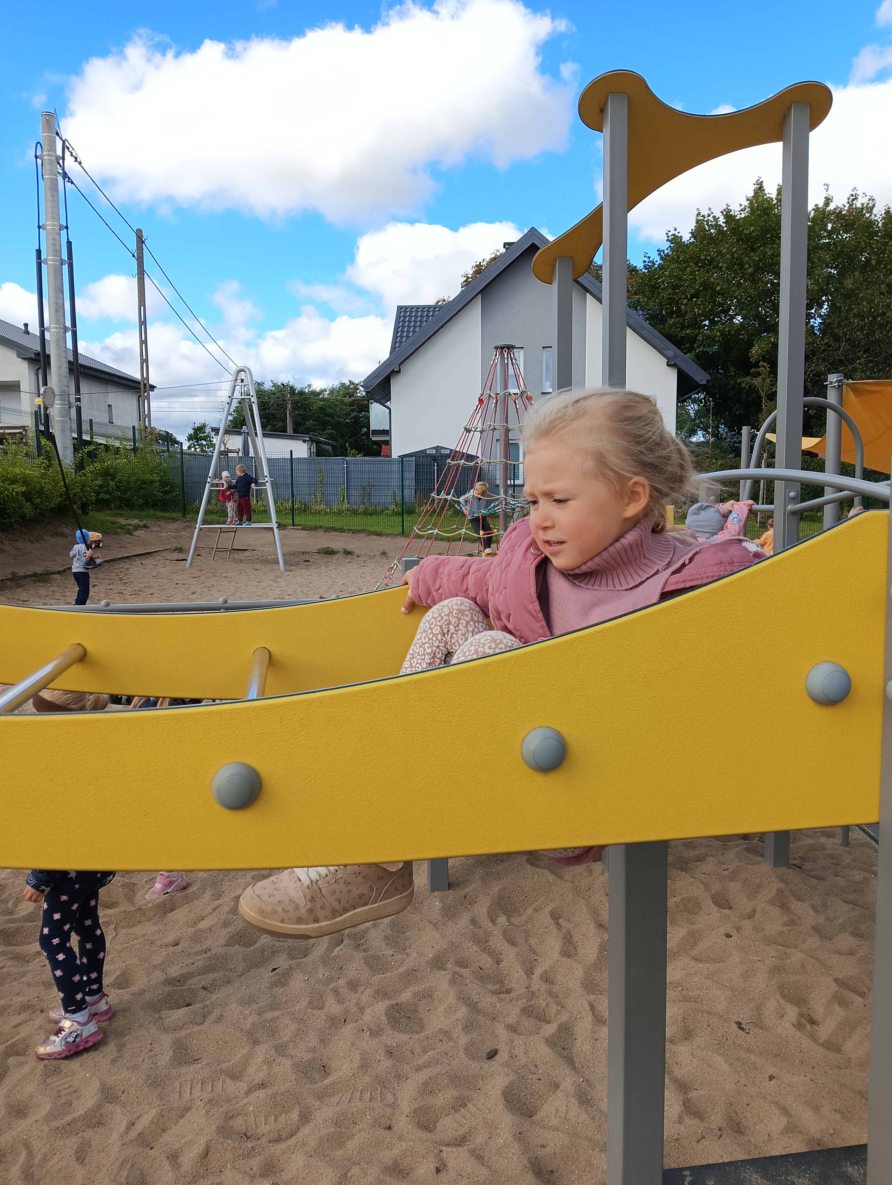 Jesienne drzewa i zabawy na placu zabaw