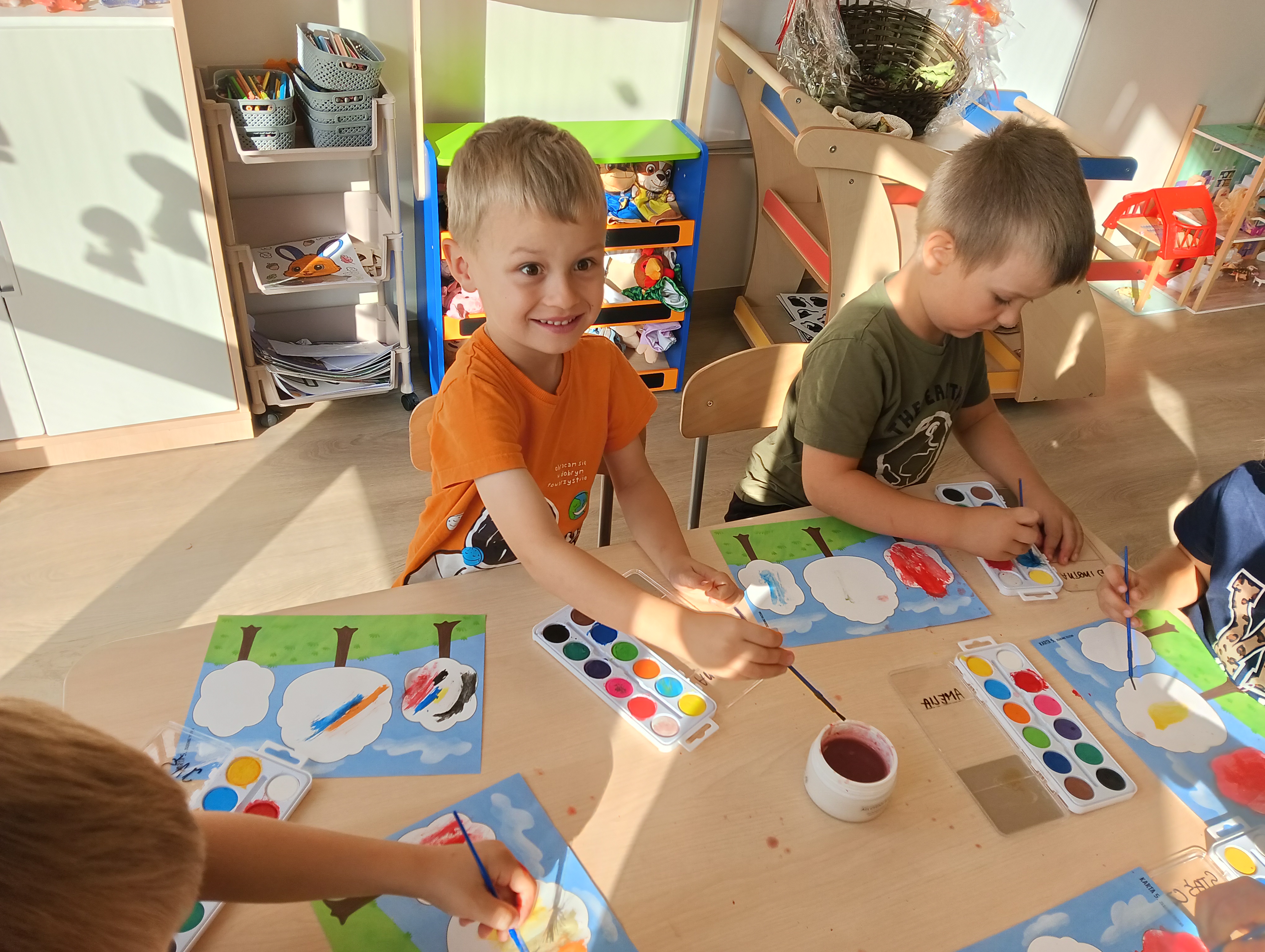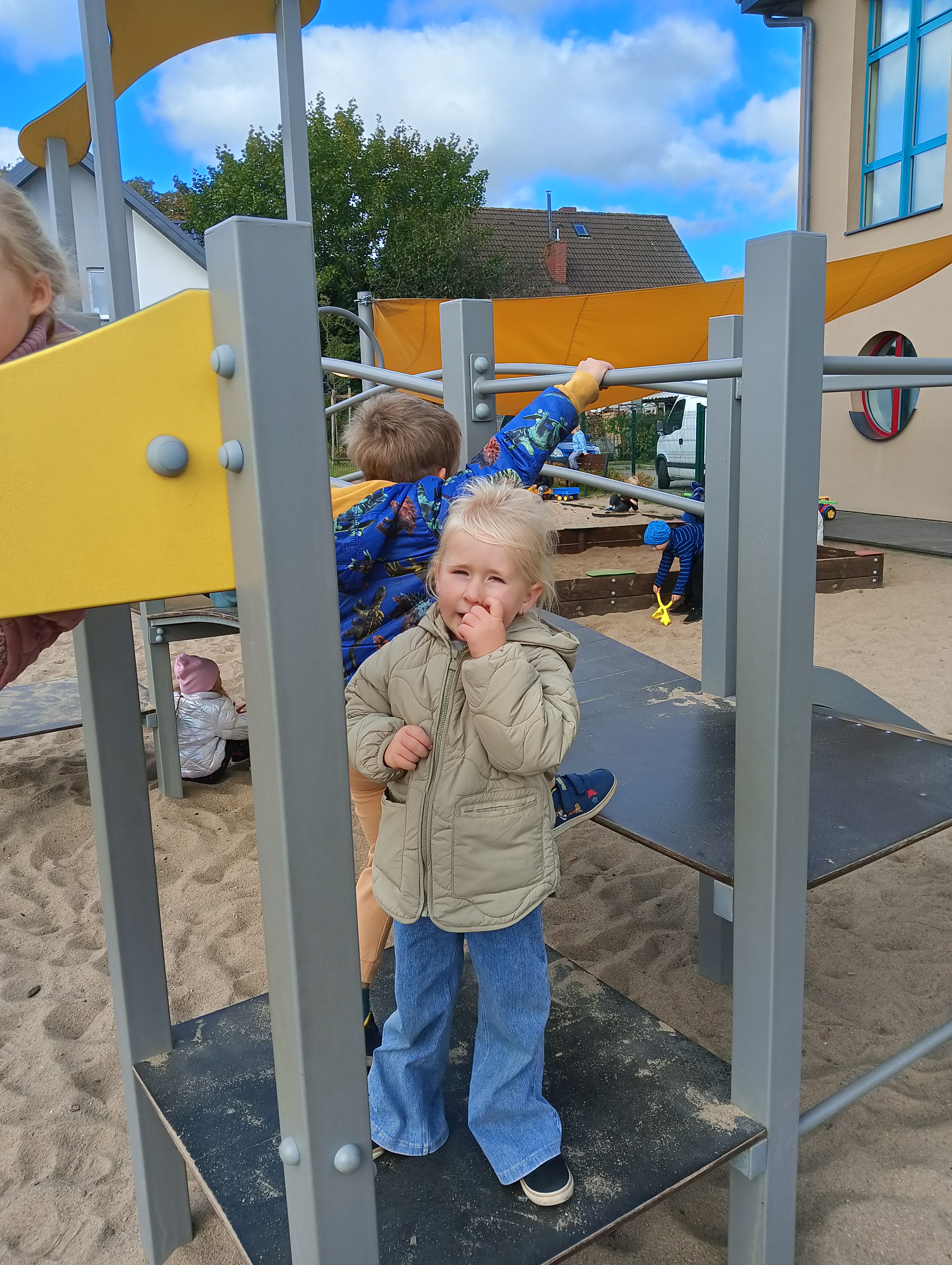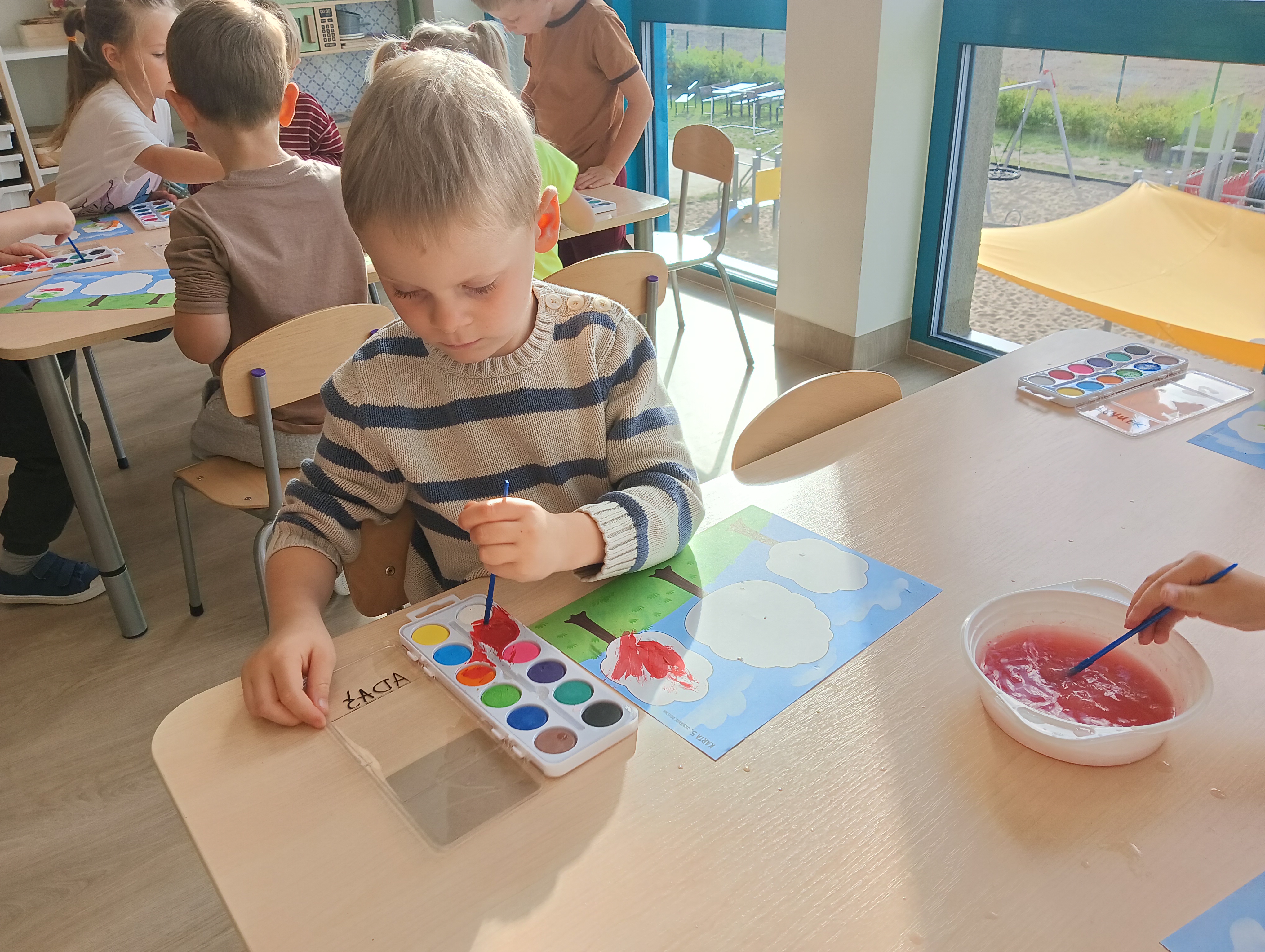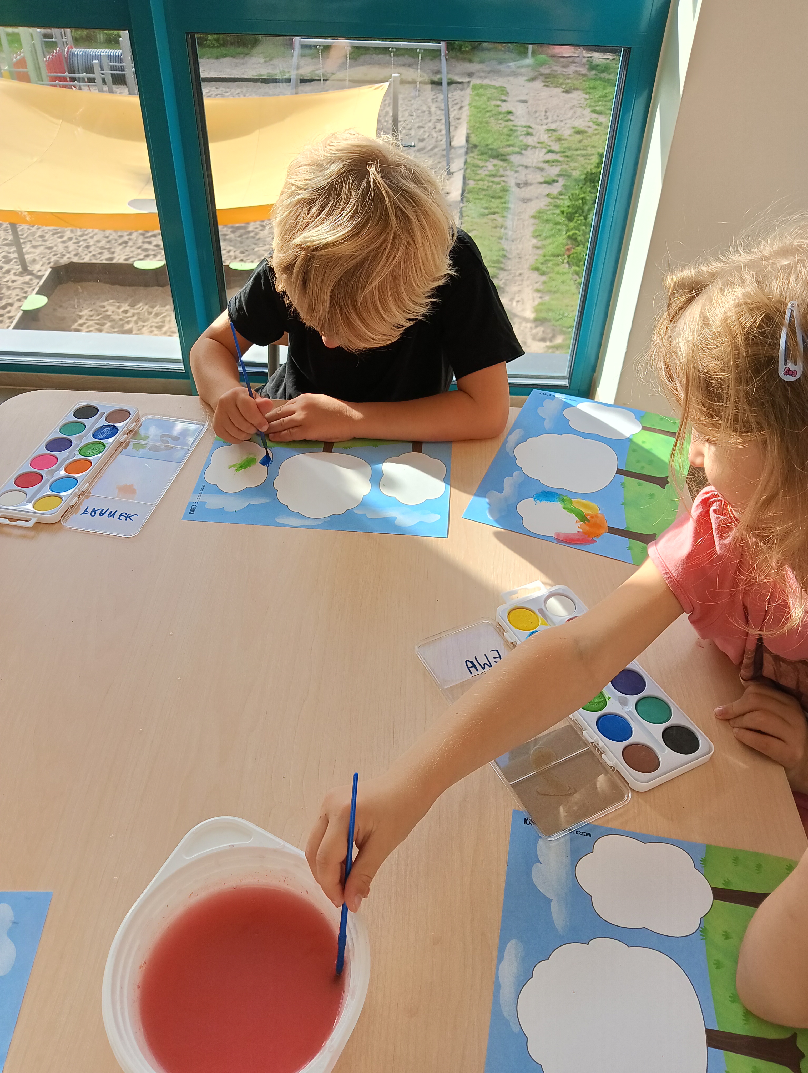 Jesienne drzewa i zabawy na placu zabaw