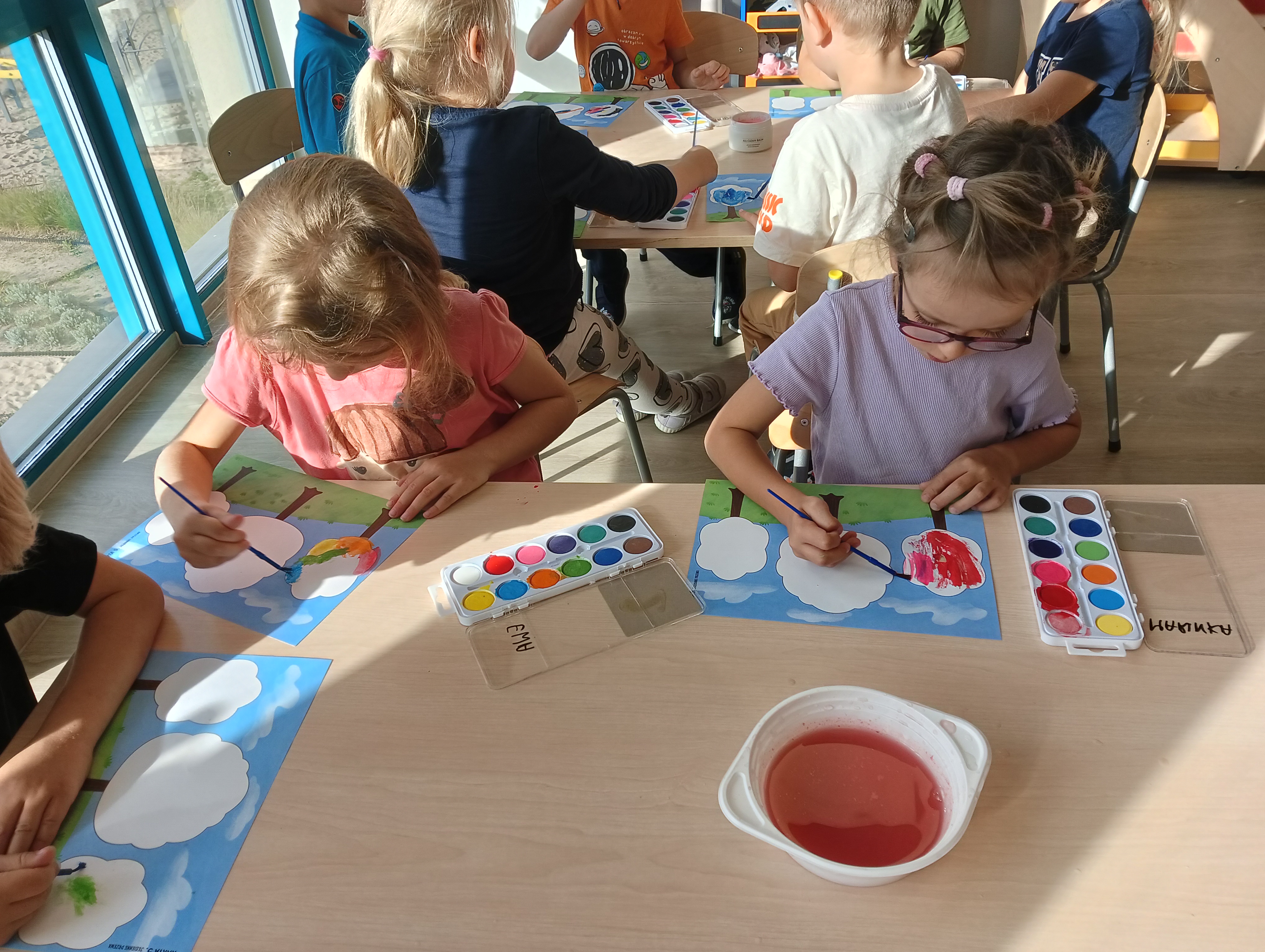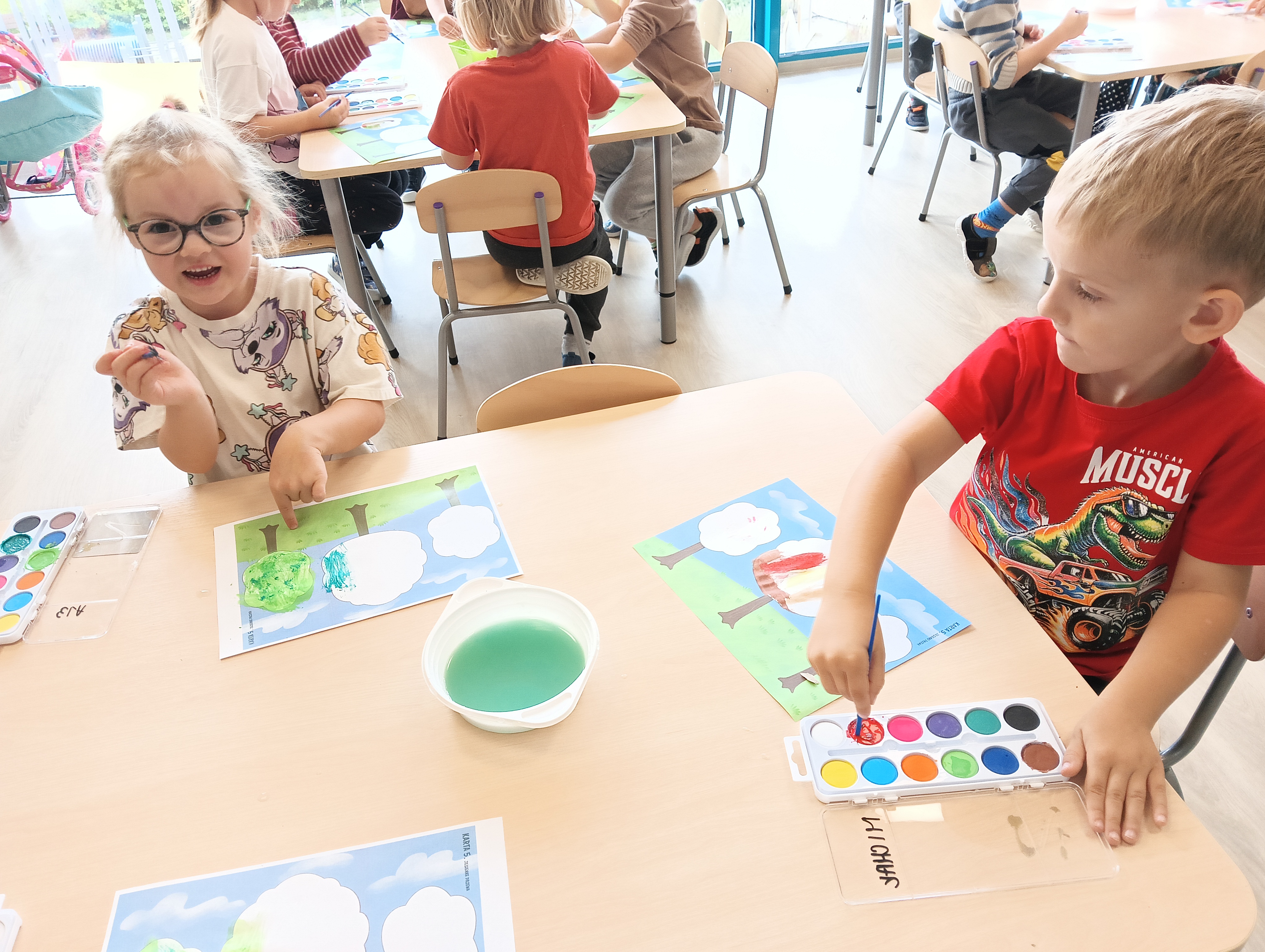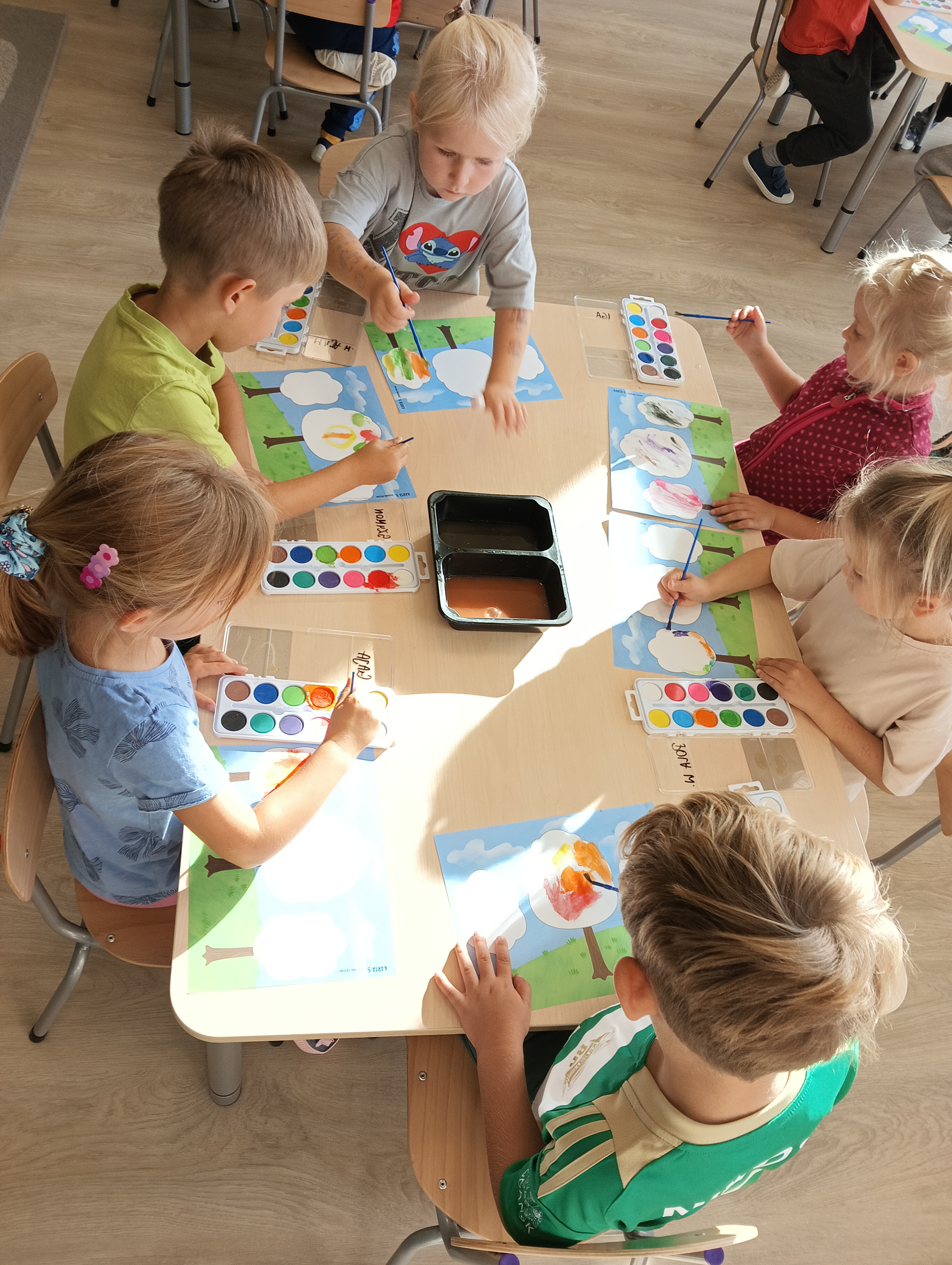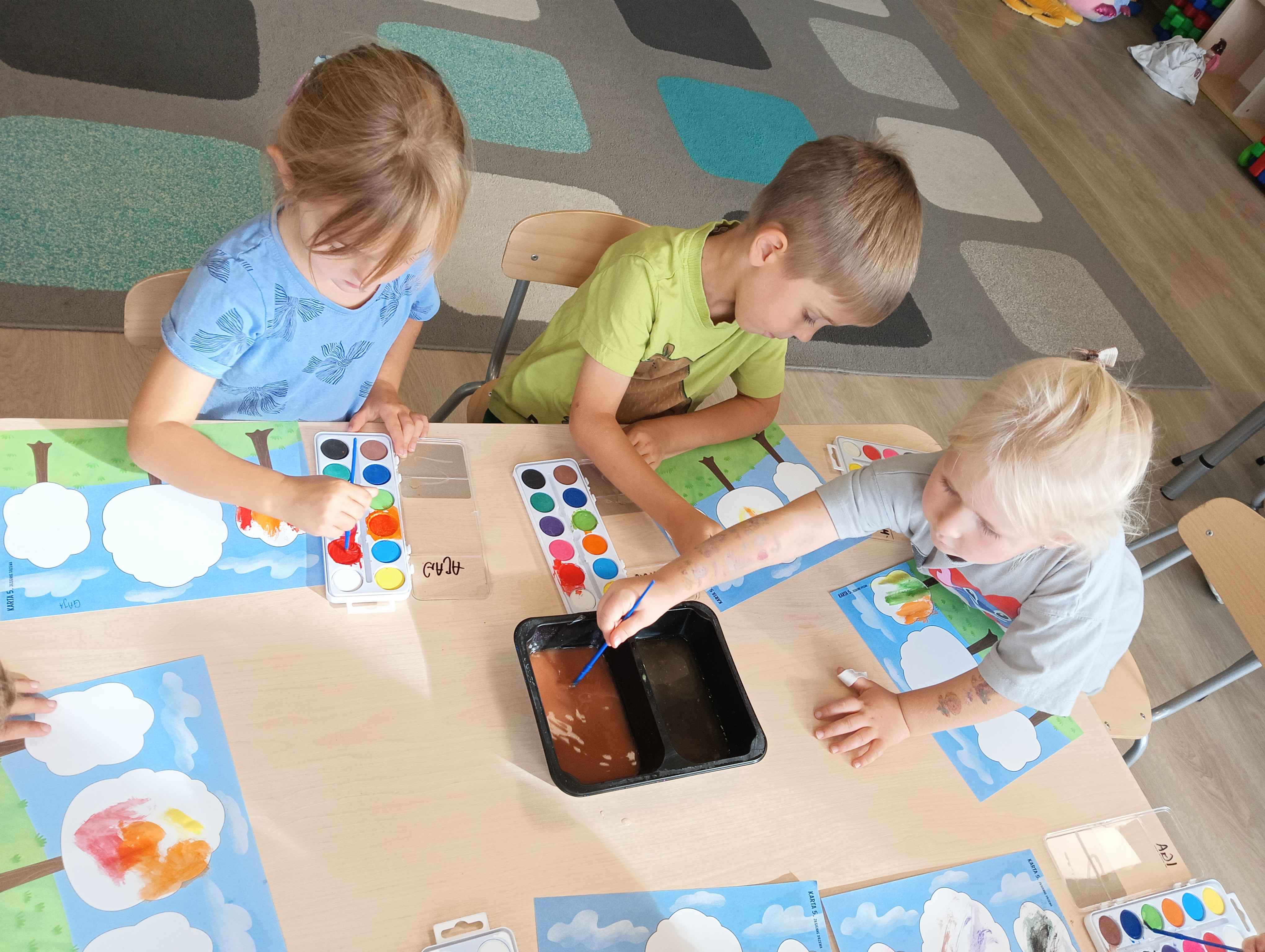 Jesienne drzewa i zabawy na placu zabaw