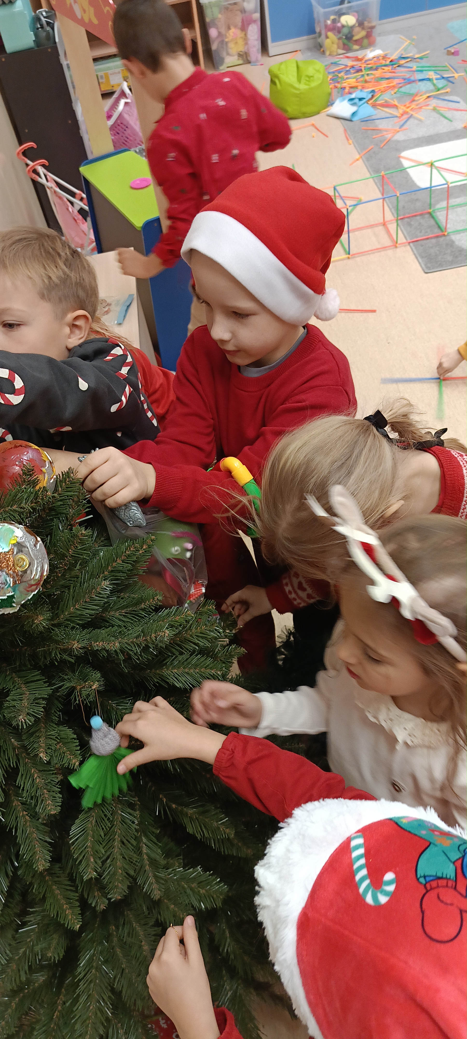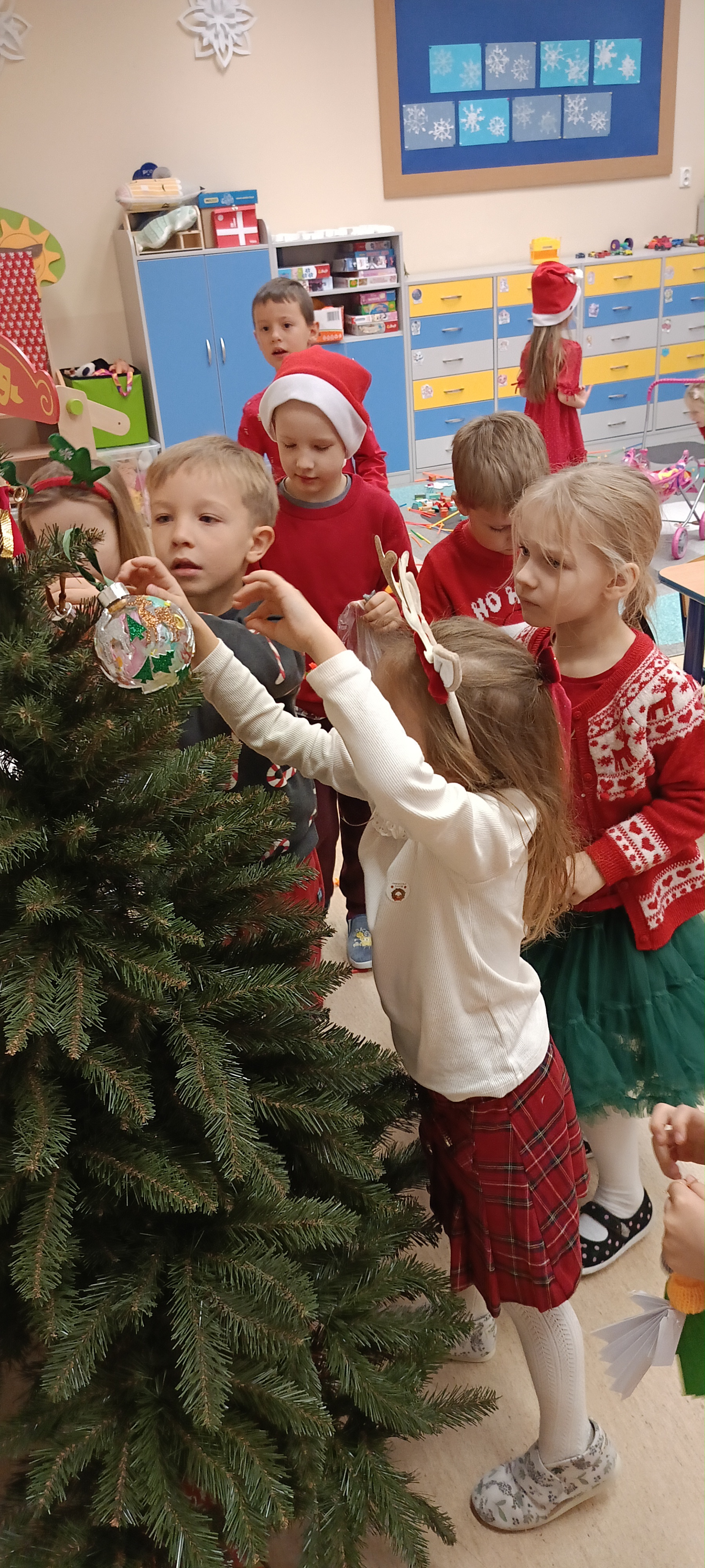 5 grudnia obchodziliśmy w naszej grupie Mikołajki, ale Mikołaj już dwa dni szybciej zaglądał do naszej klasy przez okno patrząc czy jesteśmy grzeczni?. Tego dnia dzieci stroiły choinkę ozdobami które wykonały własnoręcznie i udały się na spotkanie z Mikołajem. Był to dzień pełen radości i uśmiechu.