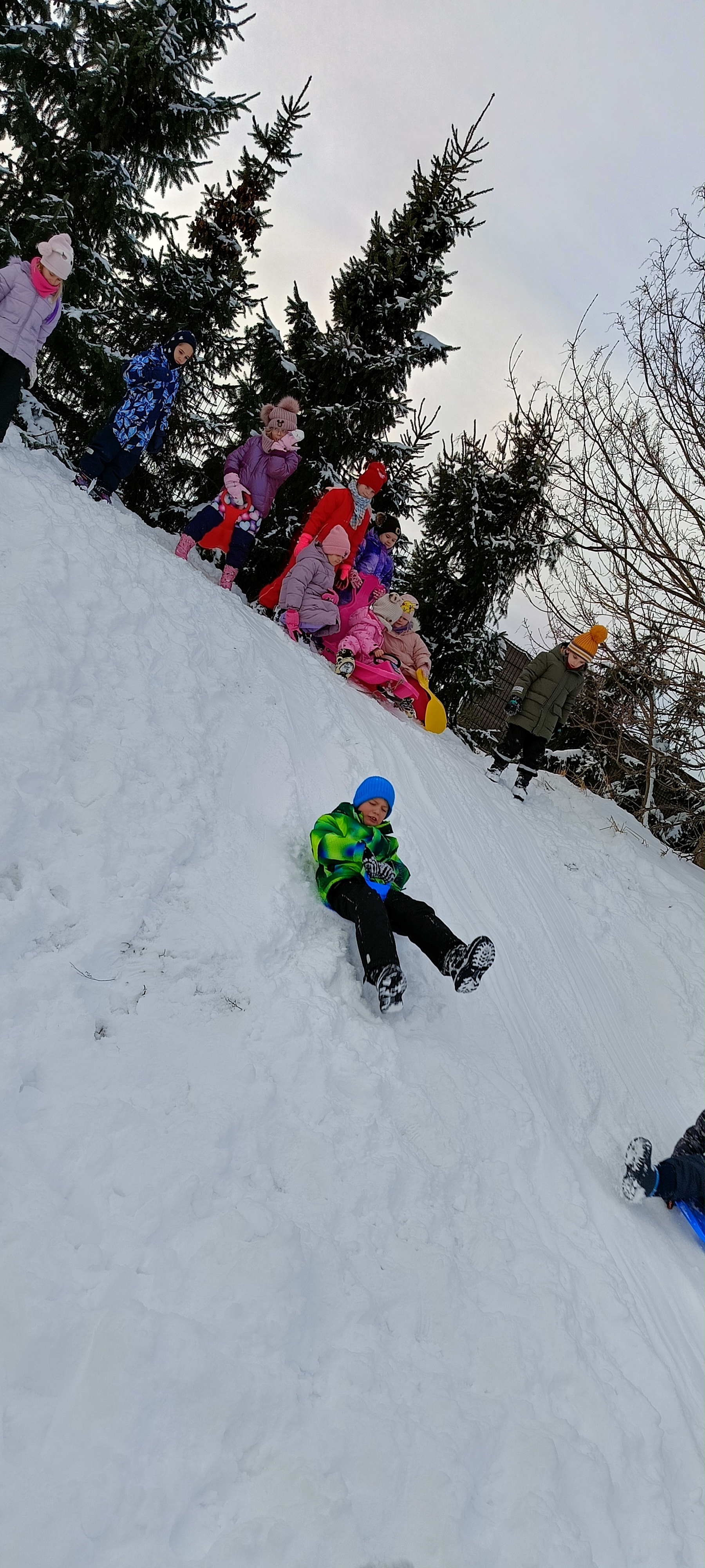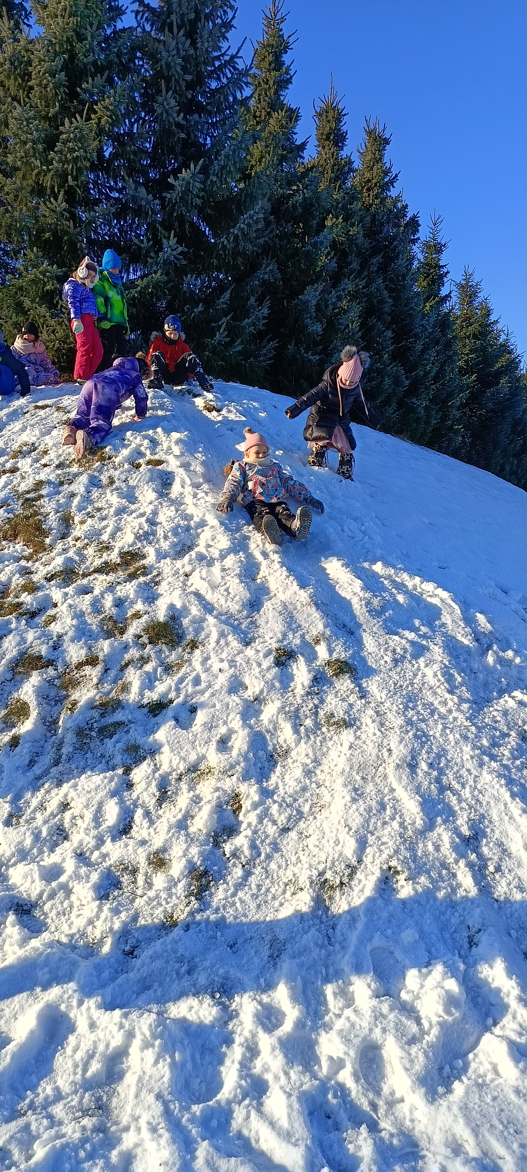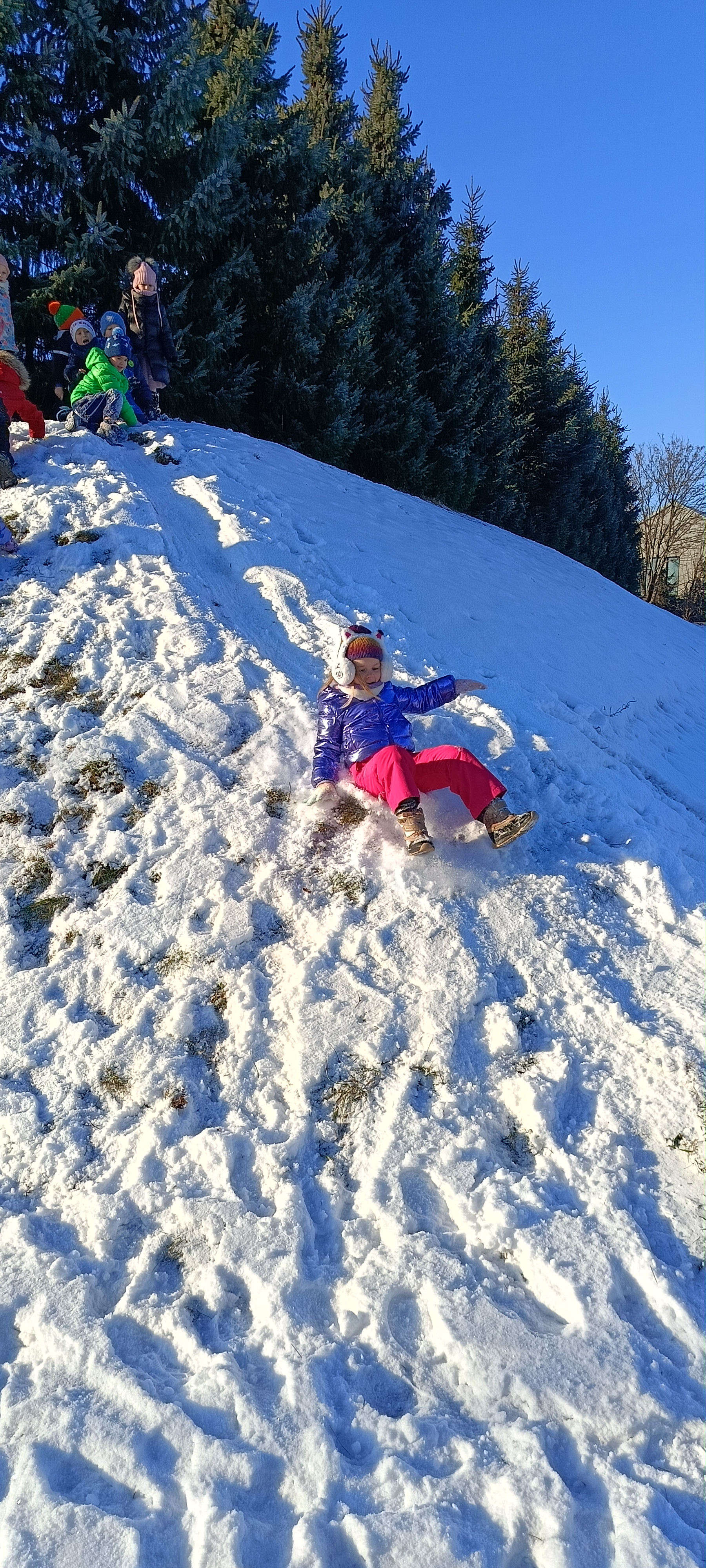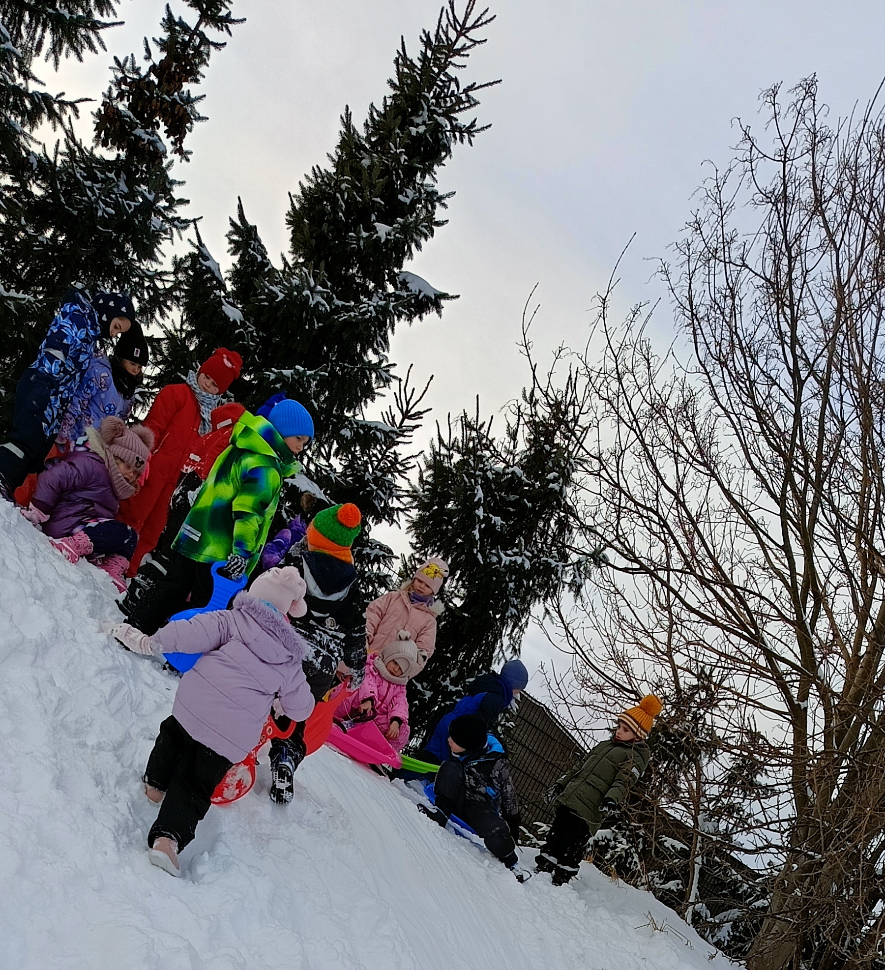 My się zimy nie boimy i na sanki wciąż chodzimy. Zima nam nie straszna a zjazdy z górki sprawiają tyle radości, że ciepło ubrane bursztynki zdobywają wszystkie możliwe górki w okolicy.