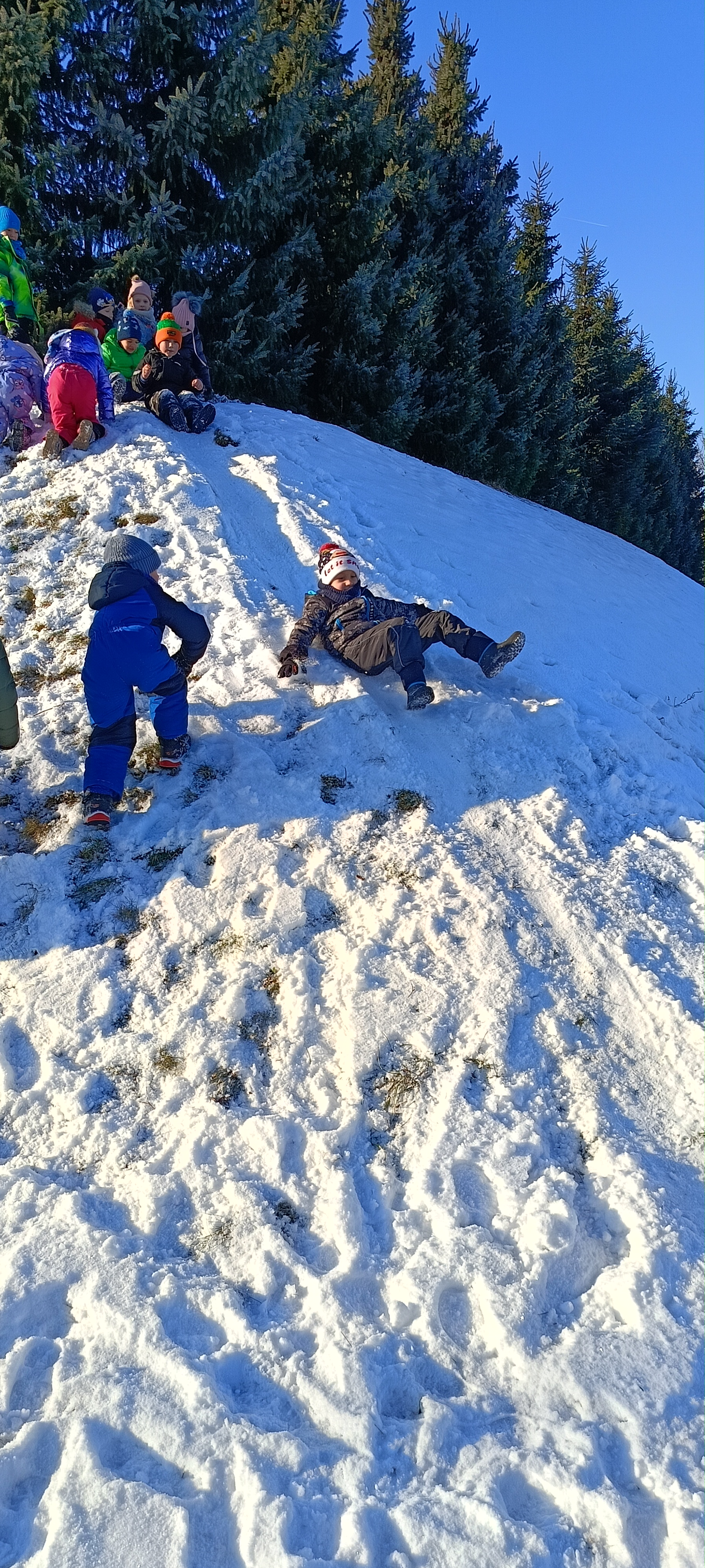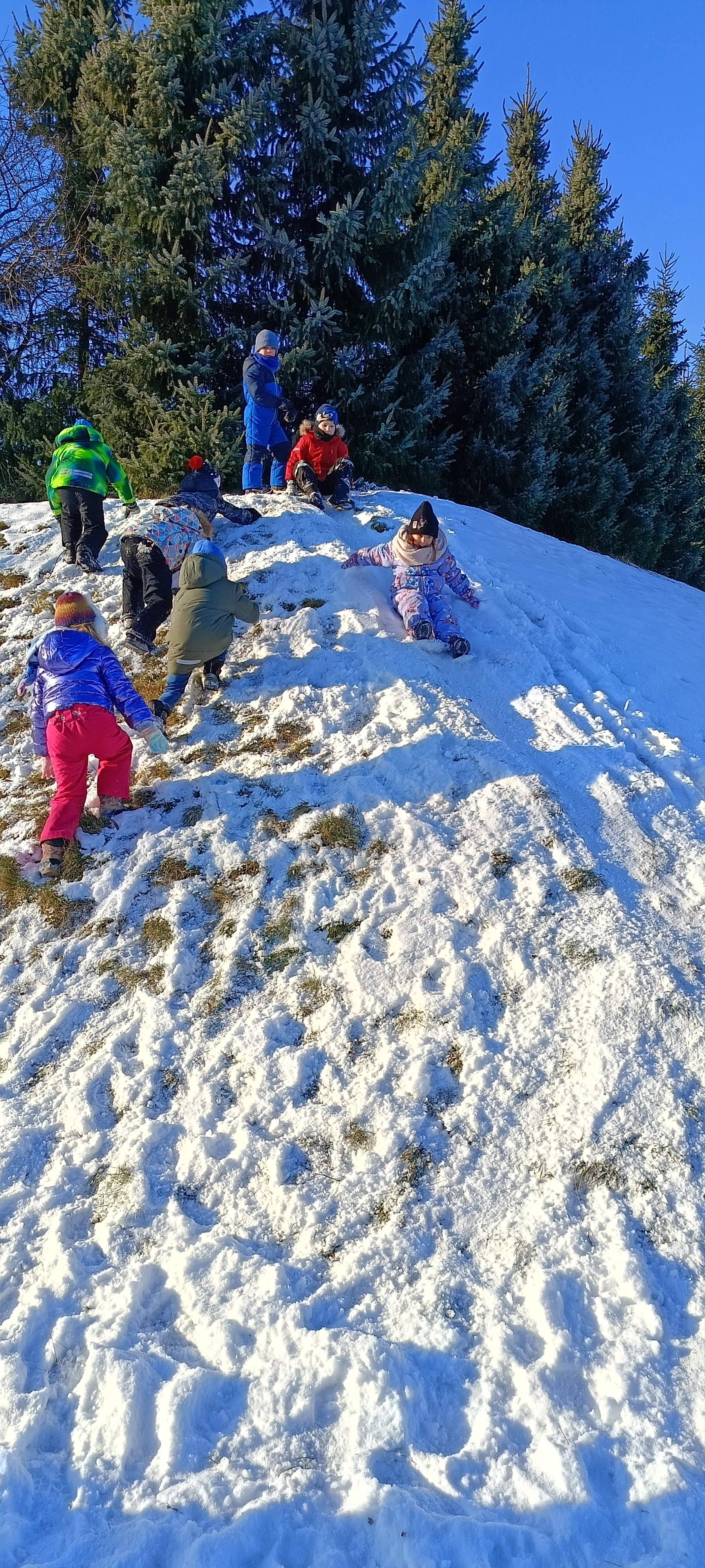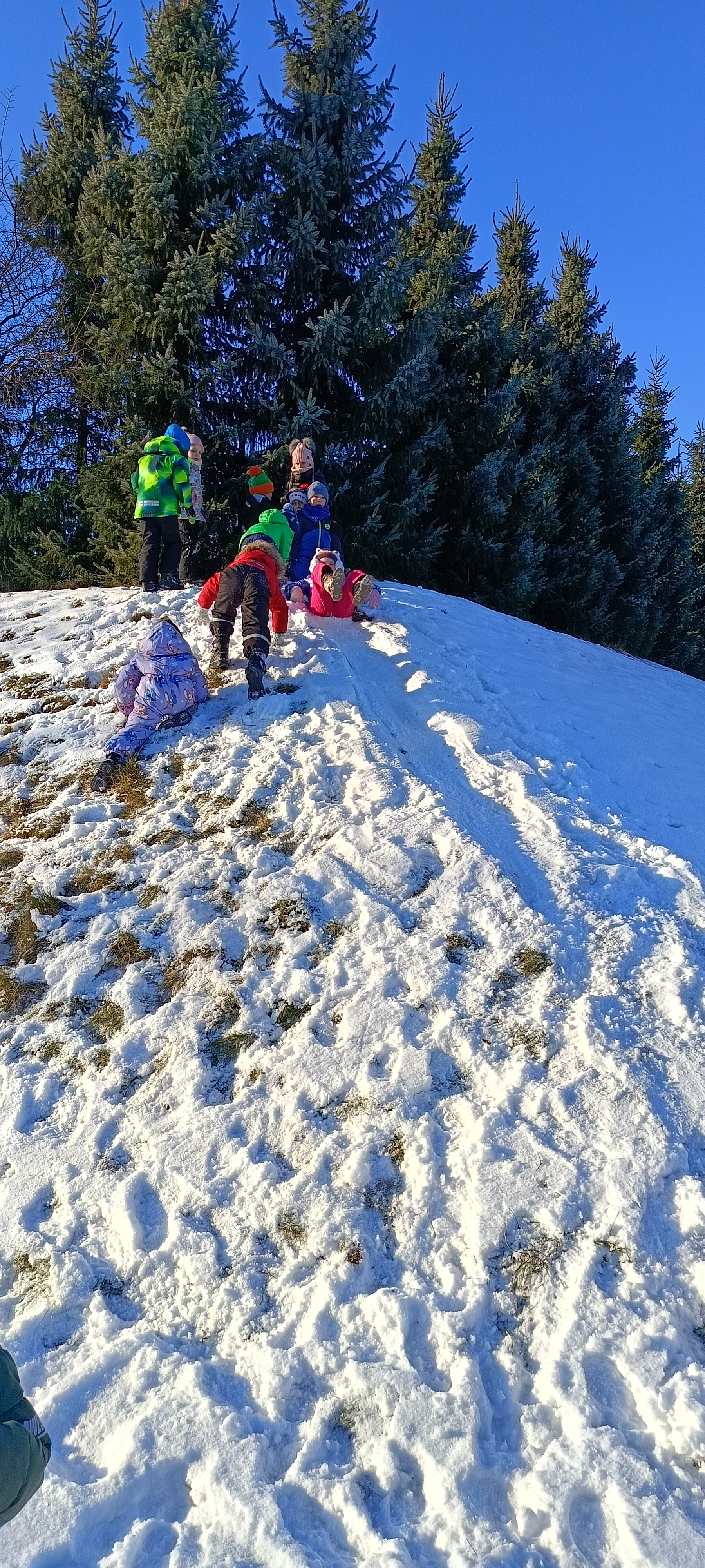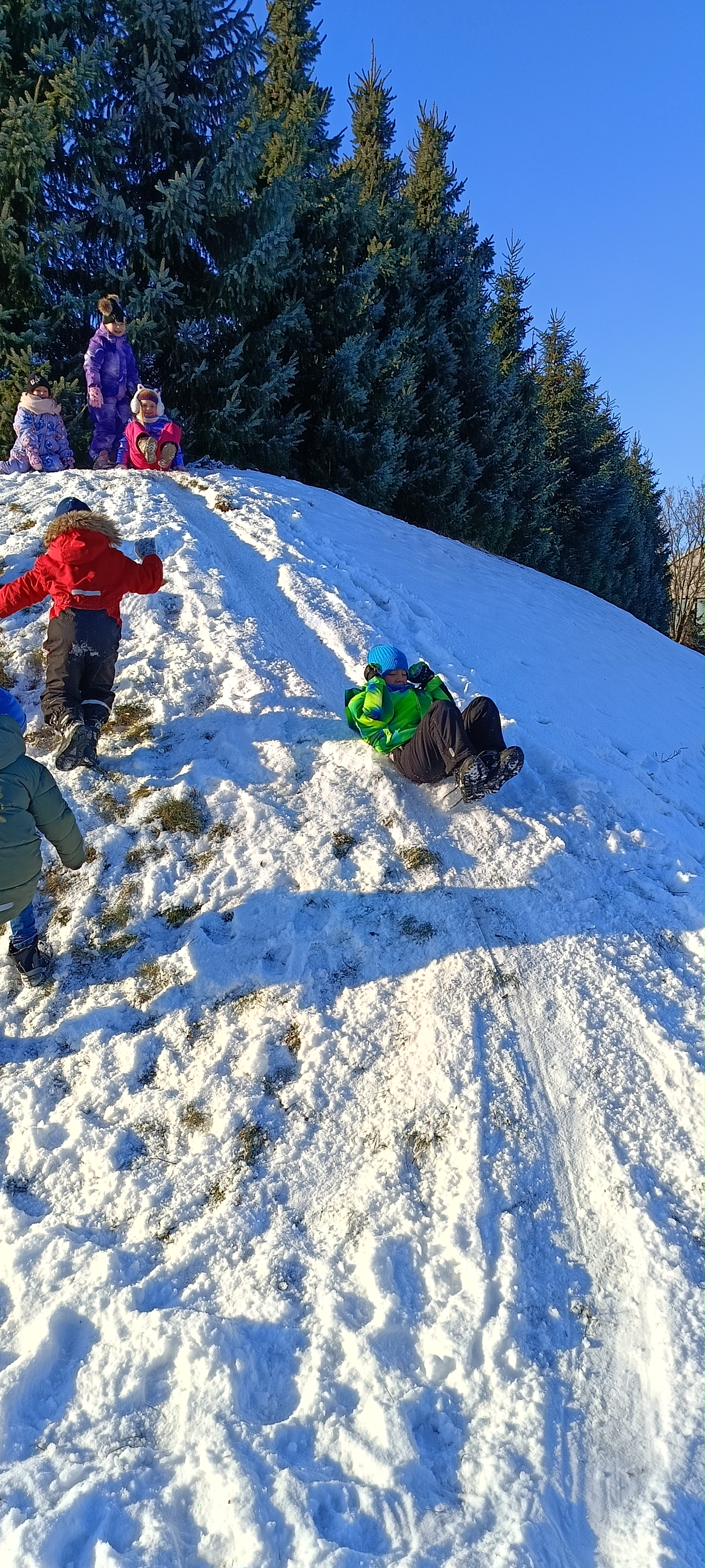 My się zimy nie boimy i na sanki wciąż chodzimy. Zima nam nie straszna a zjazdy z górki sprawiają tyle radości, że ciepło ubrane bursztynki zdobywają wszystkie możliwe górki w okolicy.