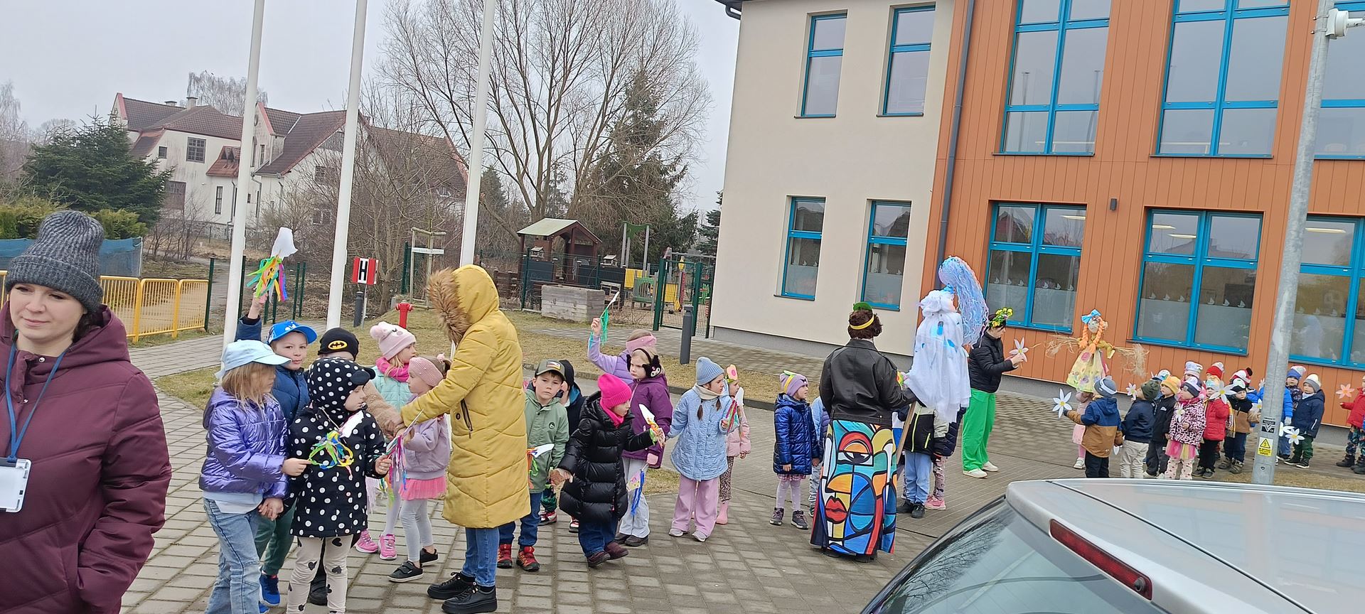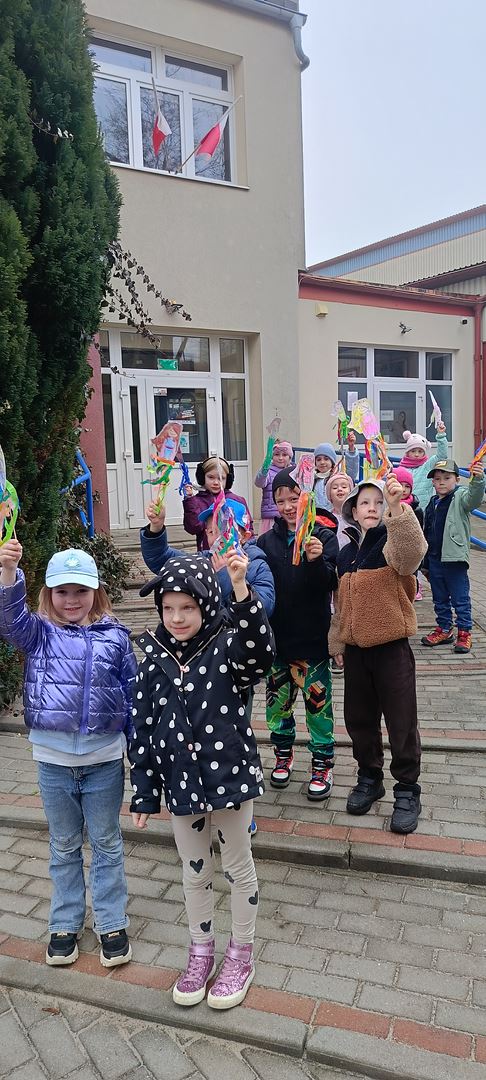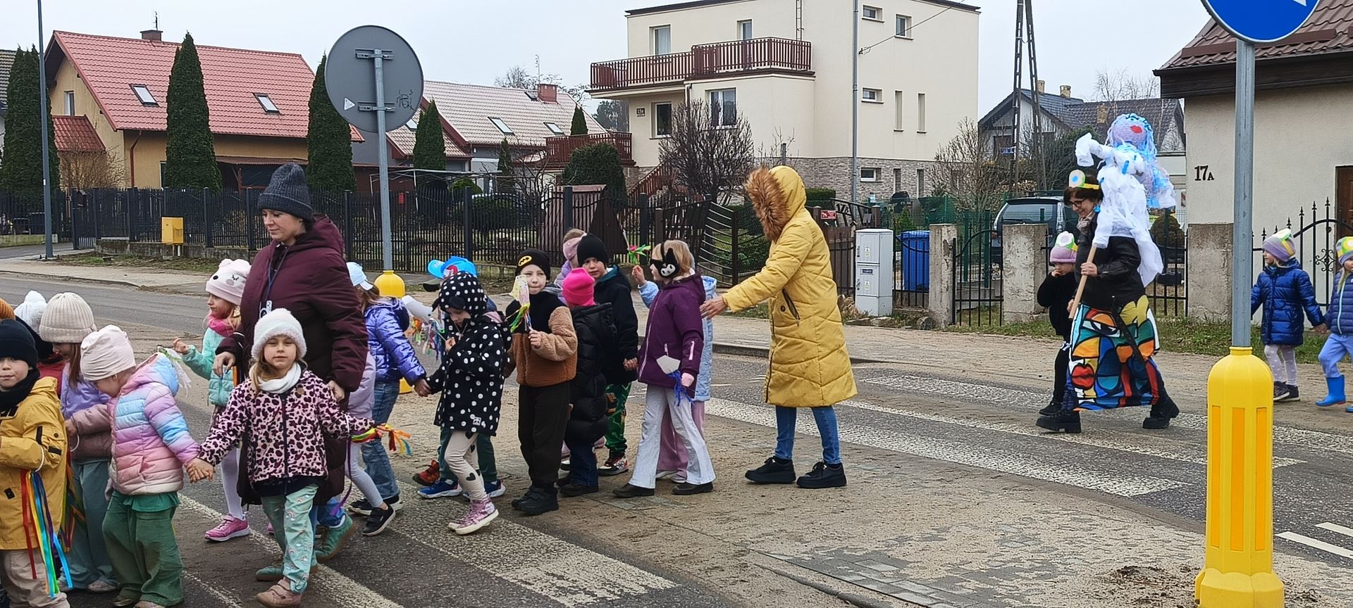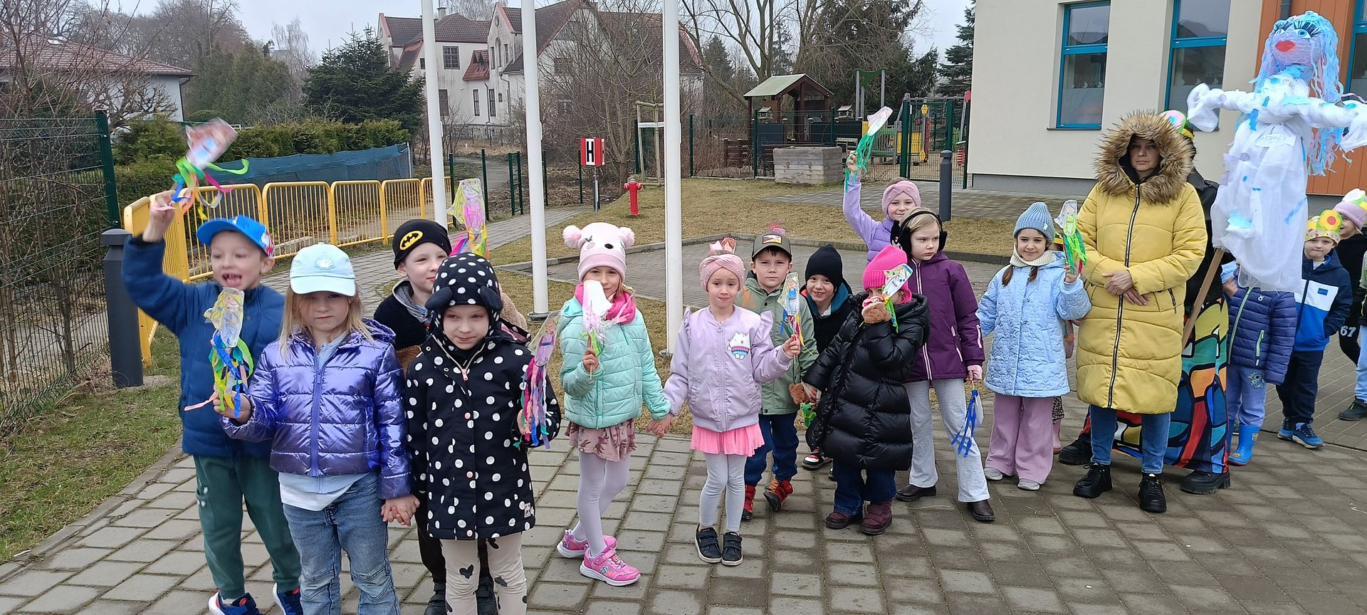 Dziś obchodziliśmy pierwszy dzień wiosny. Mimo że pogoda nie rozpieszcza to uczciliśmy go przemarszem całego przedszkola po okolicy z pięknymi własnoręcznie wykonanymi Marzannami.
