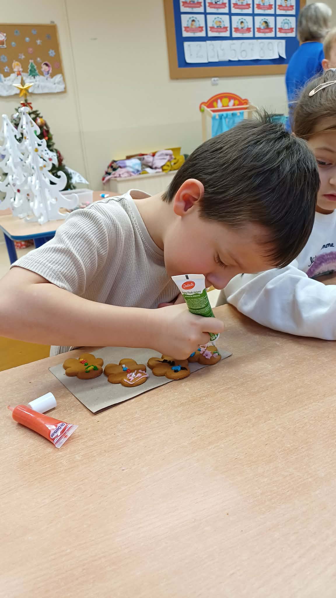 U Bursztynków się dzieje... Podczas słuchania kolęd w świątecznym klimacie dzieci zdobiły swoje piękne pierniki. Każdy użył swojej kreatywności by stworzyć oryginalny, własny piernik.