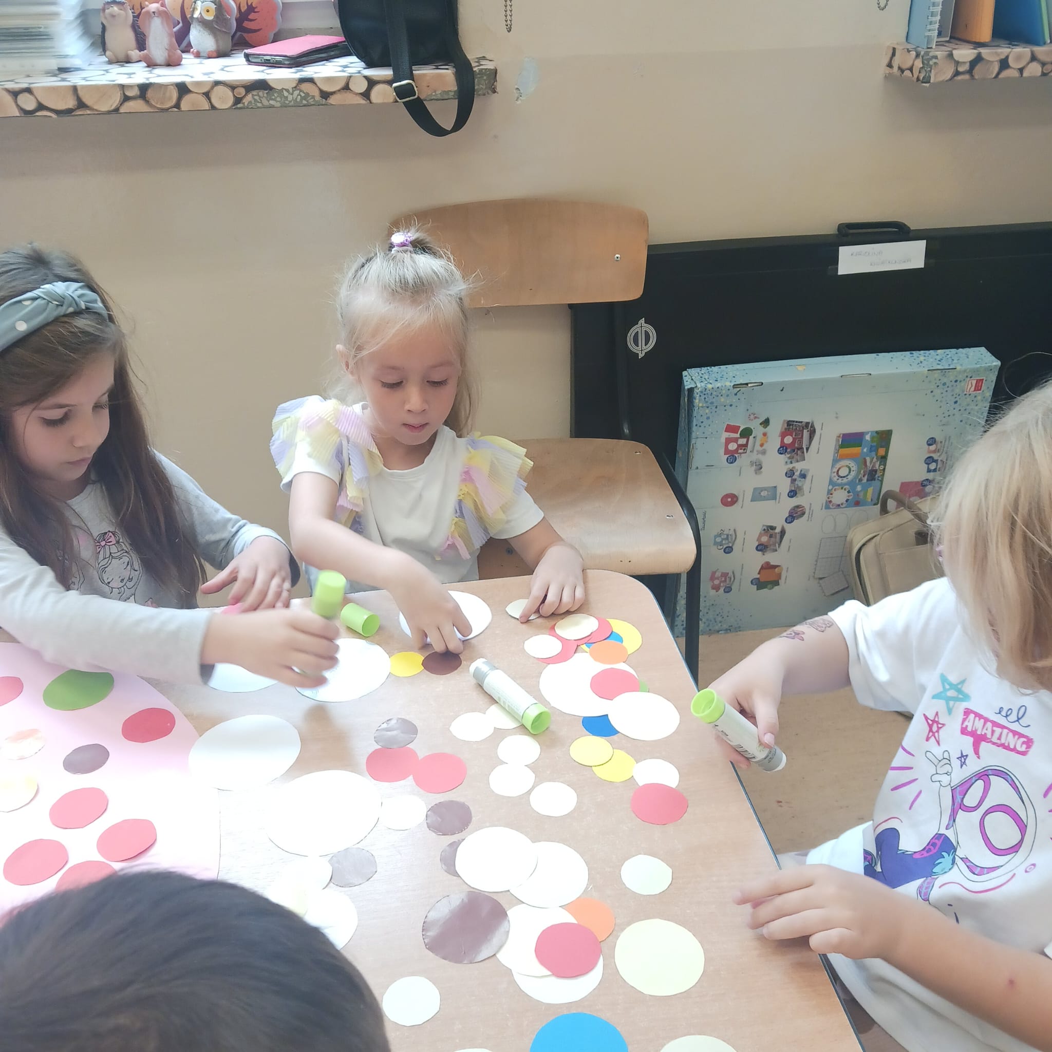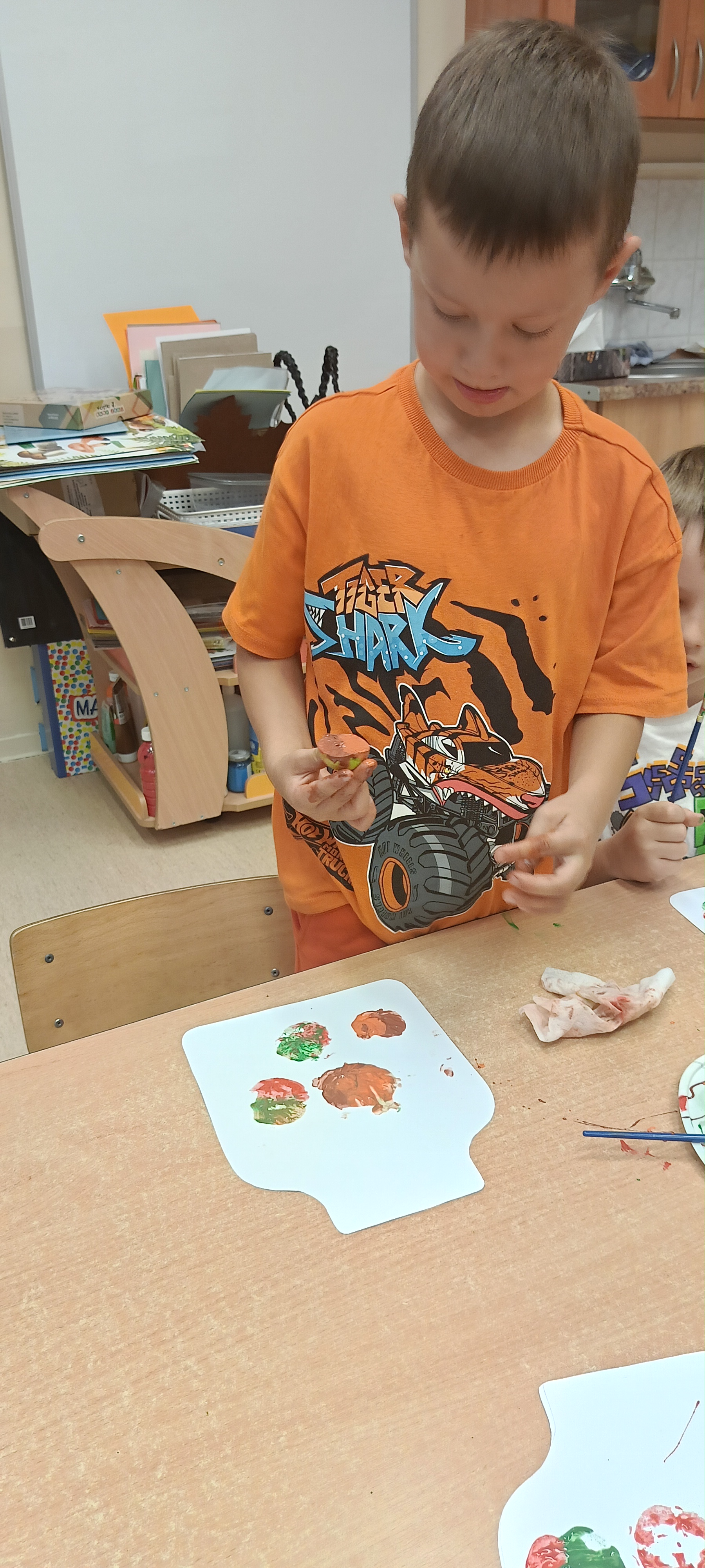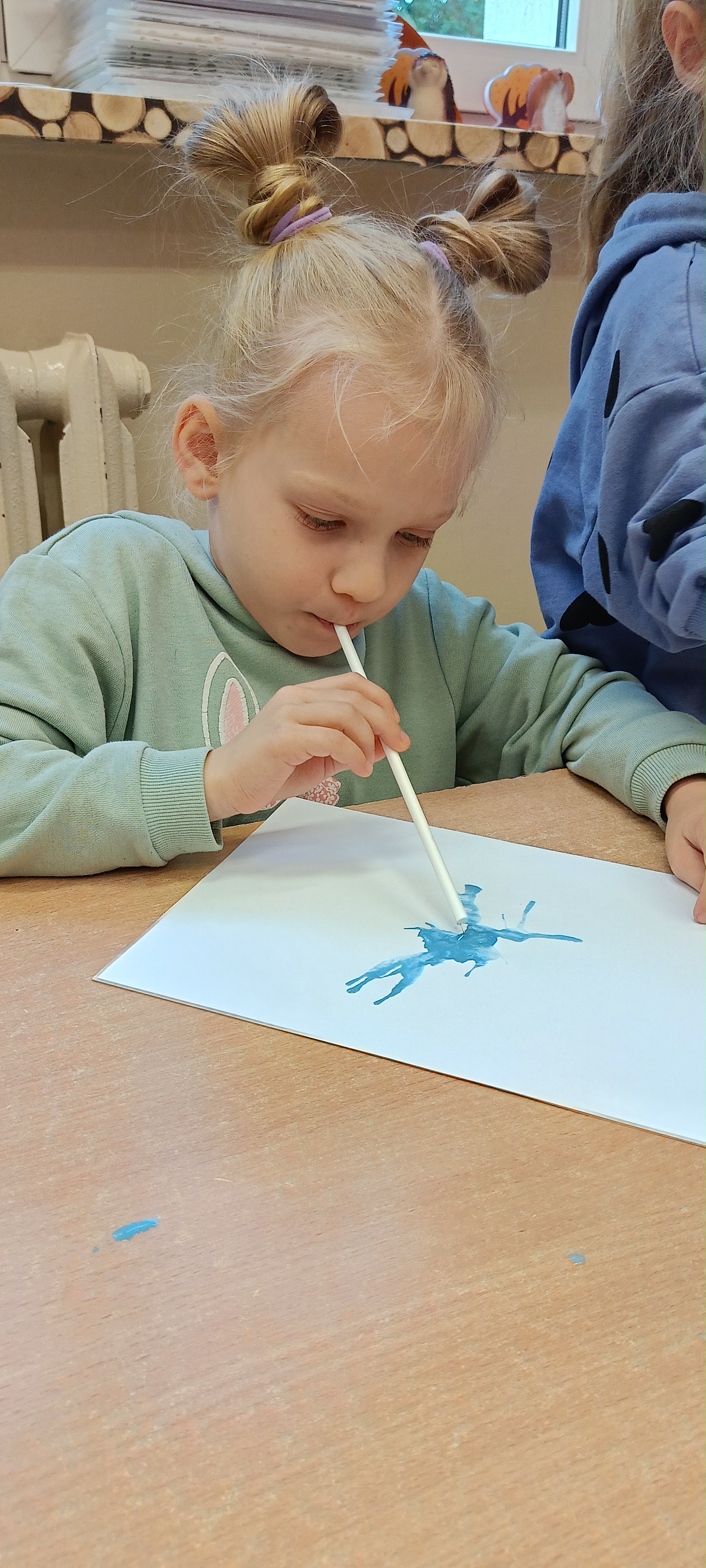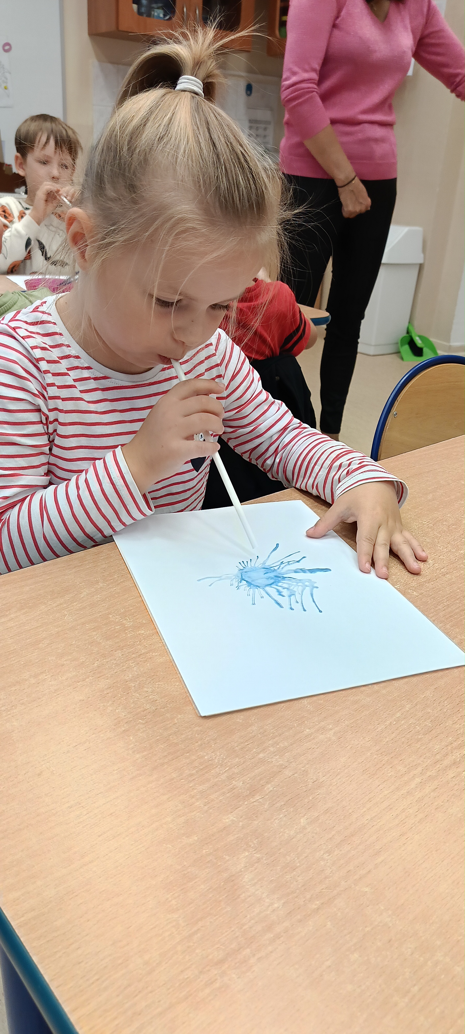 W naszej grupie Bursztynki tworzą swoje prace nie tylko za pomocą kredek i farb ale wykorzystujemy surowe jabłka, tworzymy kałuże za pomocą farb i słomek oraz wydzieranek. Dzieci są bardzo zdolne i kreatywne w różnych dziedzinach: plastycznych, muzycznych, edukacyjnych jak i w zabawach dowolnych.