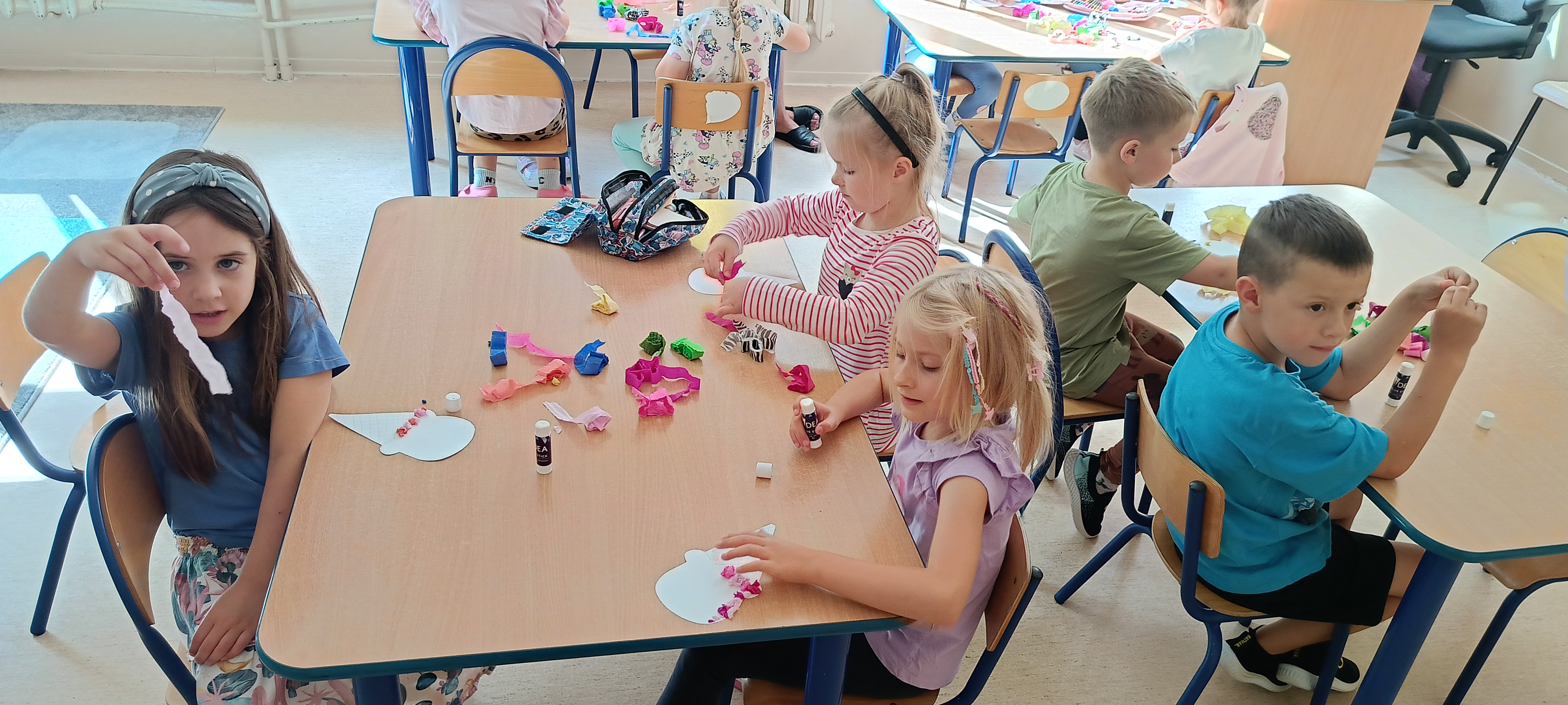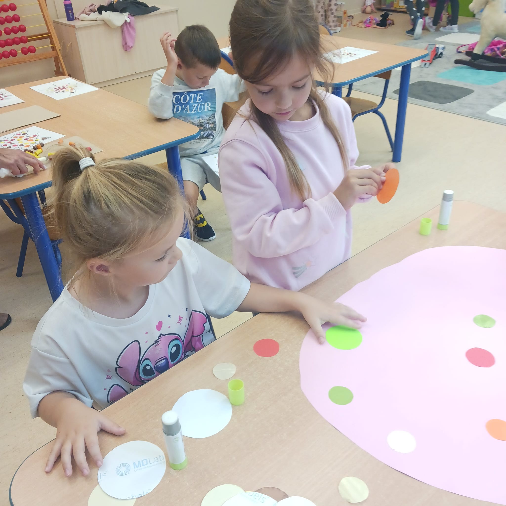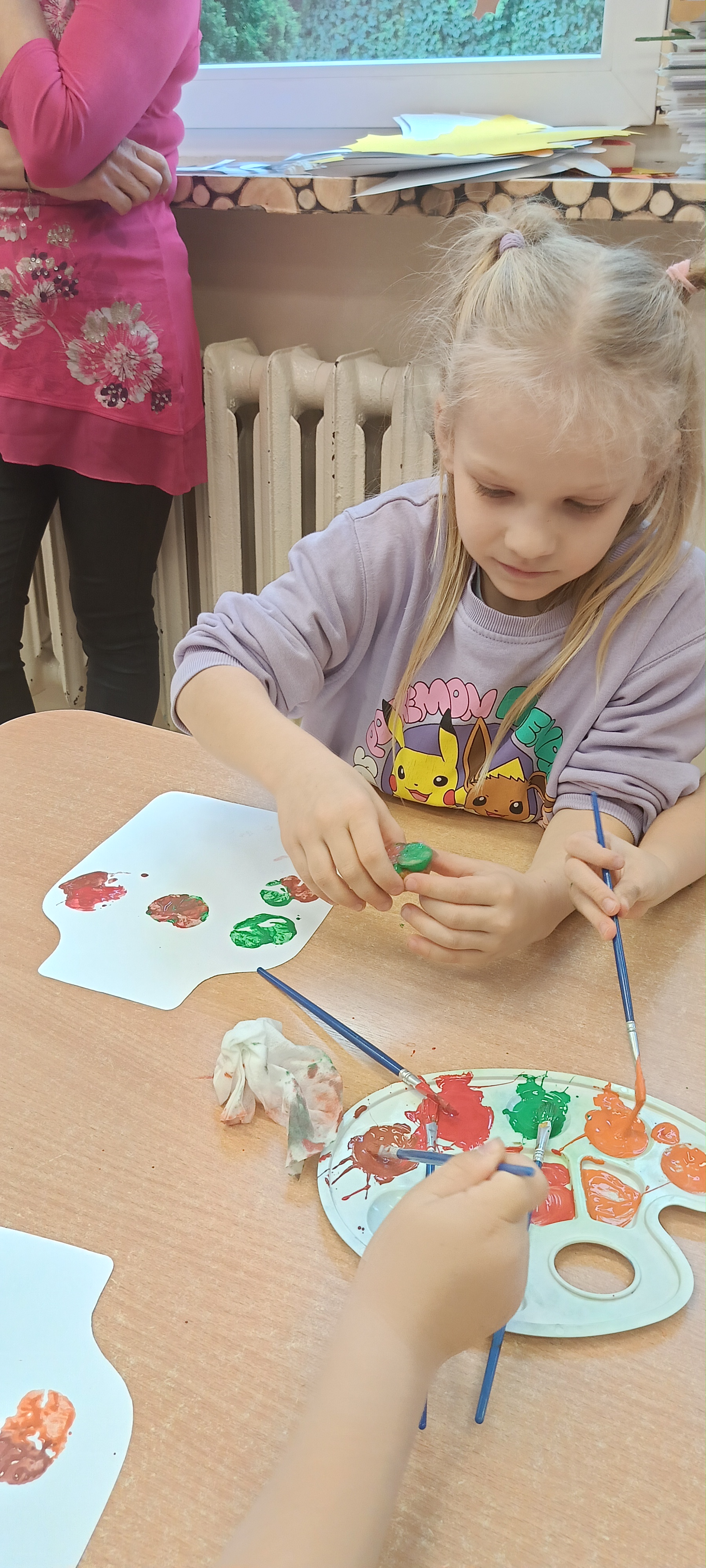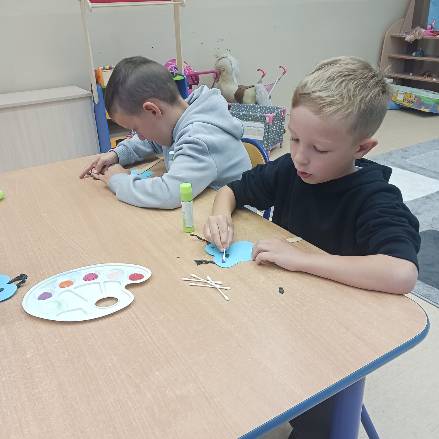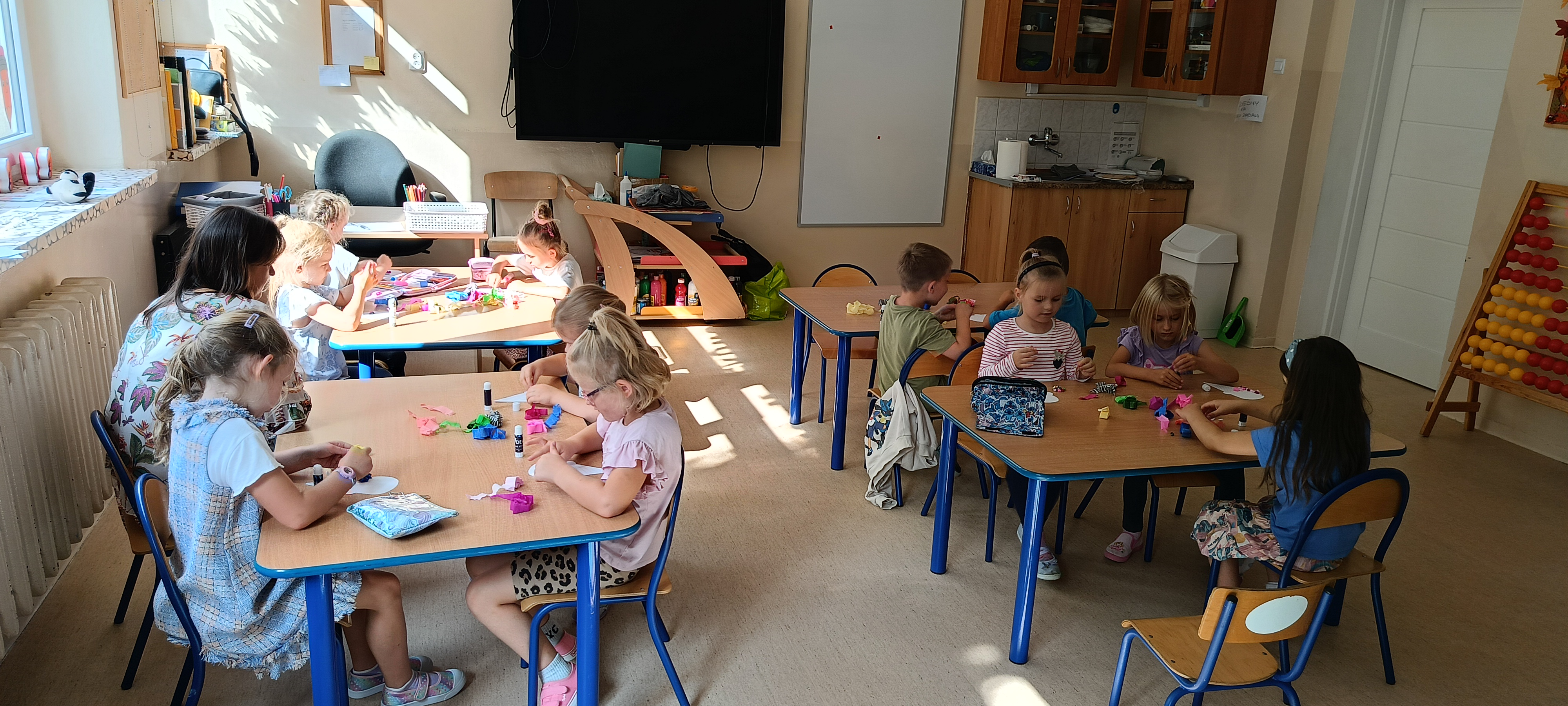 W naszej grupie Bursztynki tworzą swoje prace nie tylko za pomocą kredek i farb ale wykorzystujemy surowe jabłka, tworzymy kałuże za pomocą farb i słomek oraz wydzieranek. Dzieci są bardzo zdolne i kreatywne w różnych dziedzinach: plastycznych, muzycznych, edukacyjnych jak i w zabawach dowolnych.