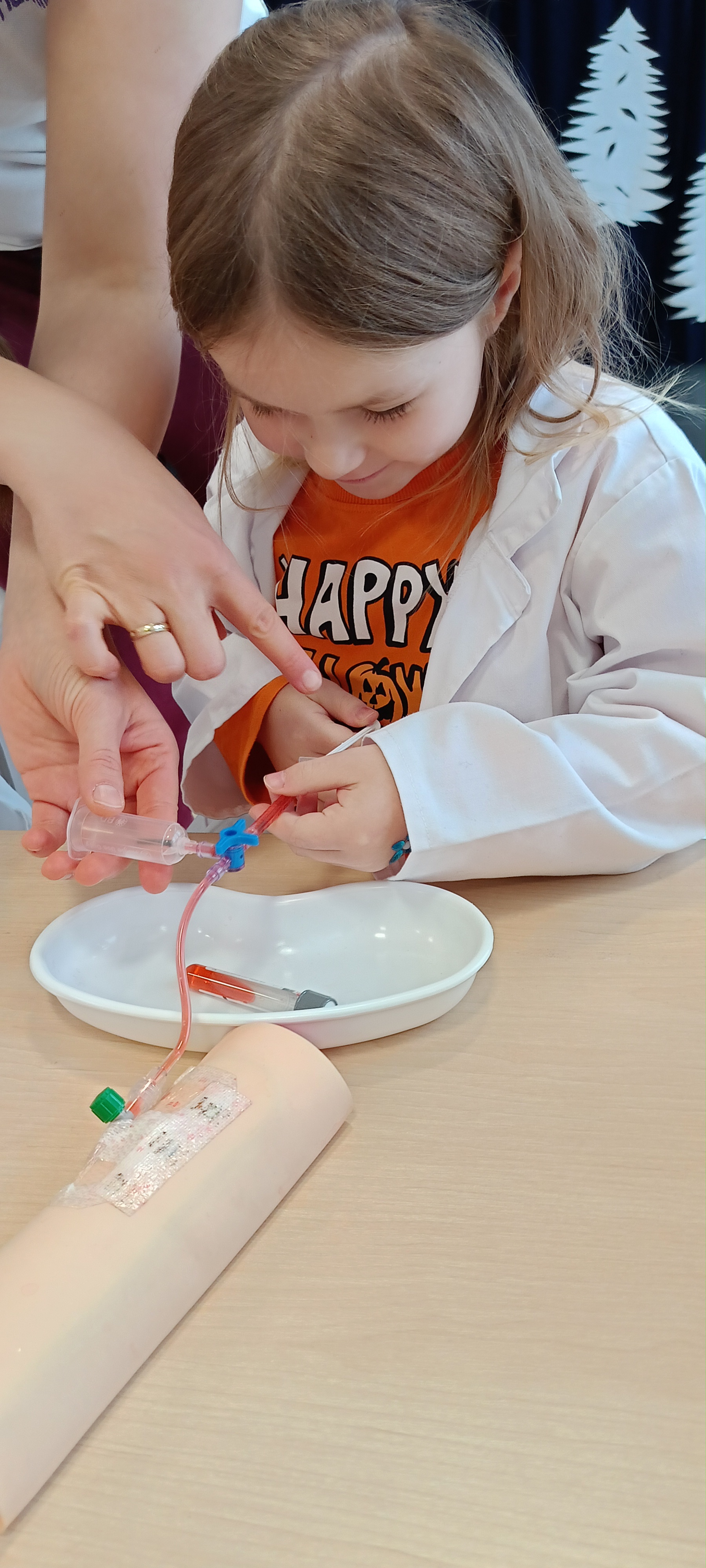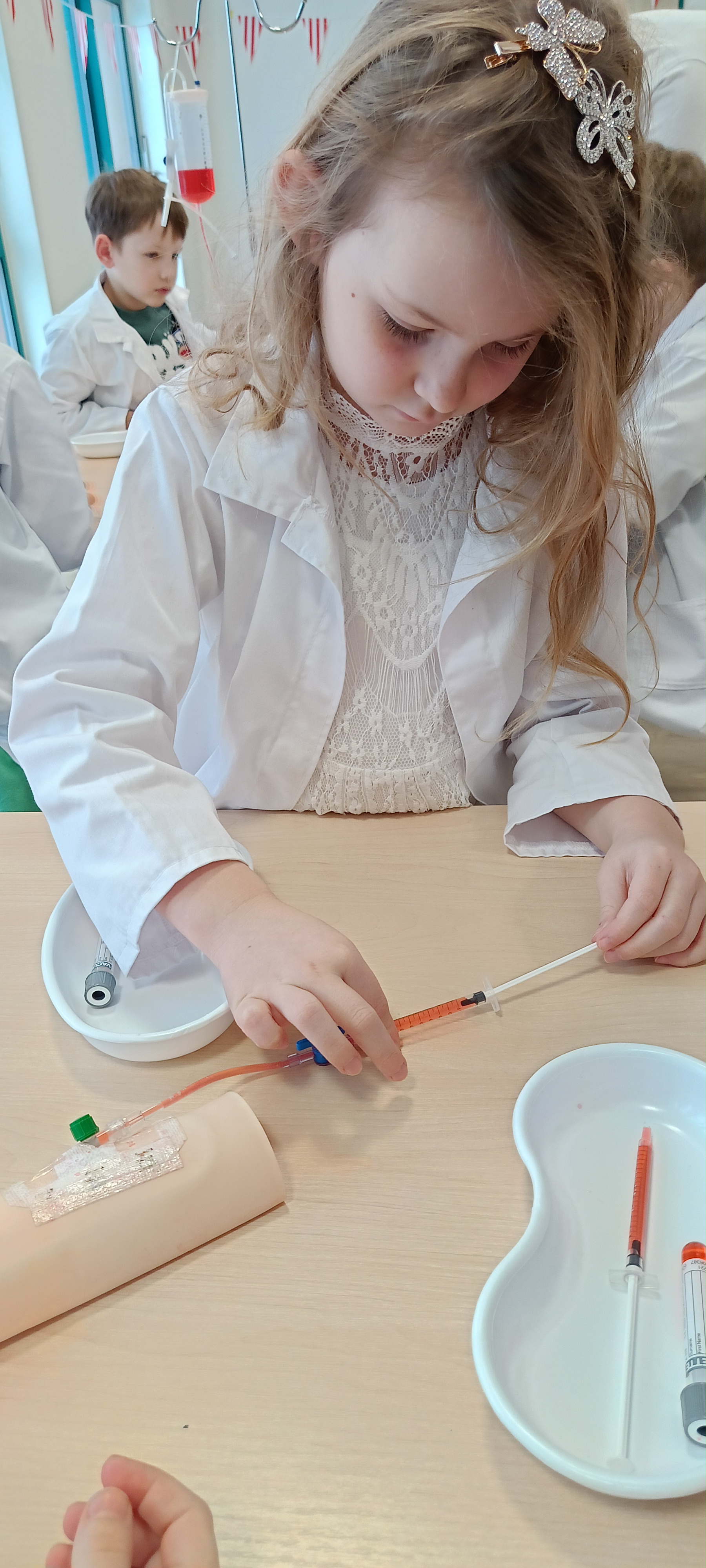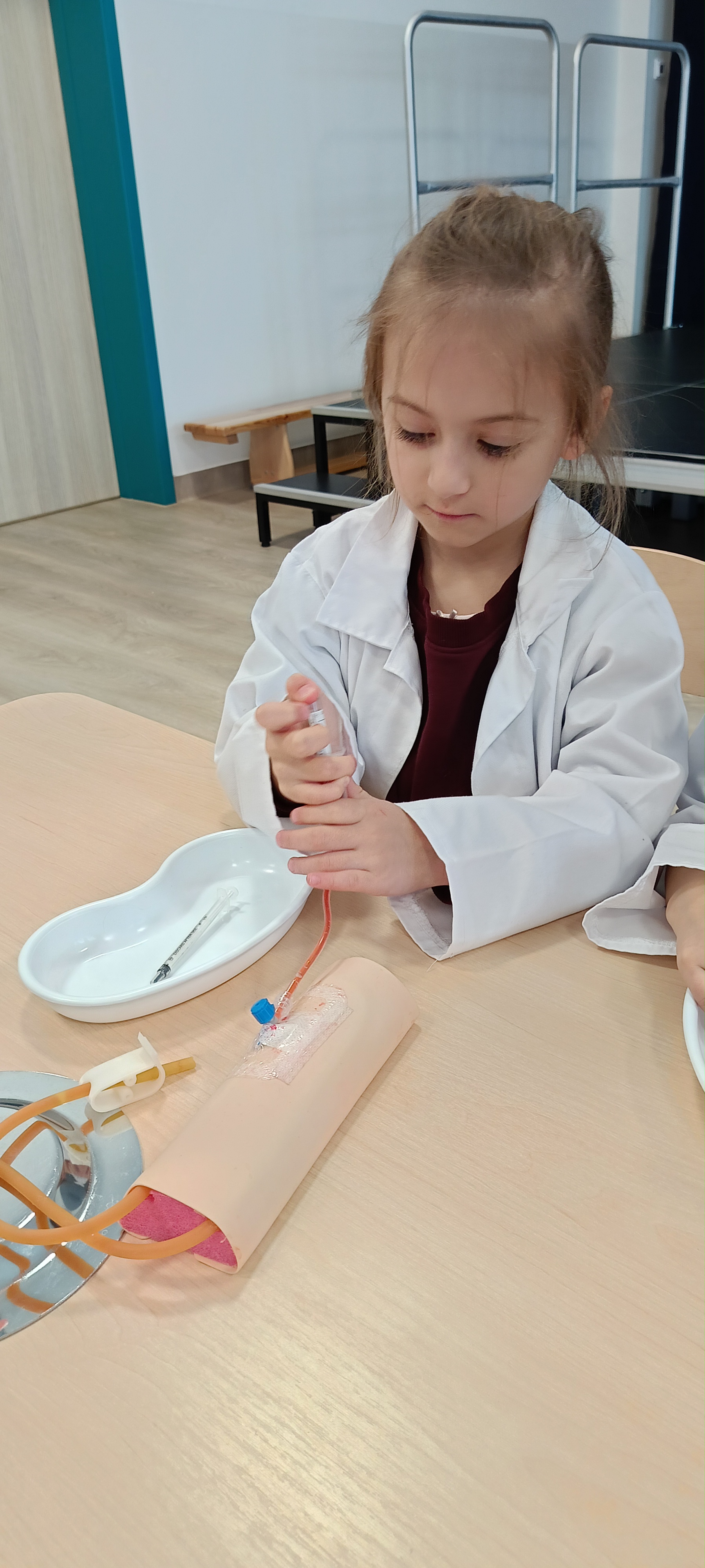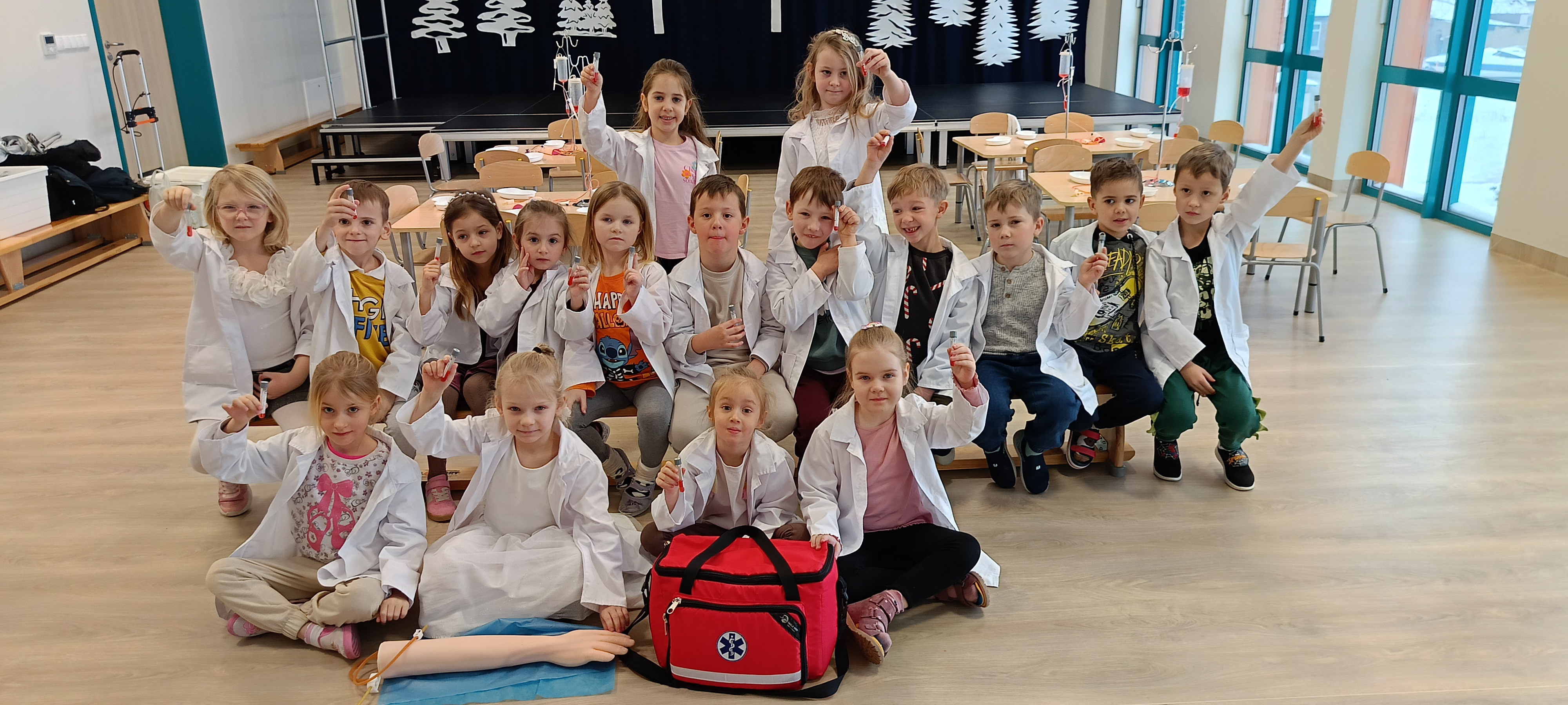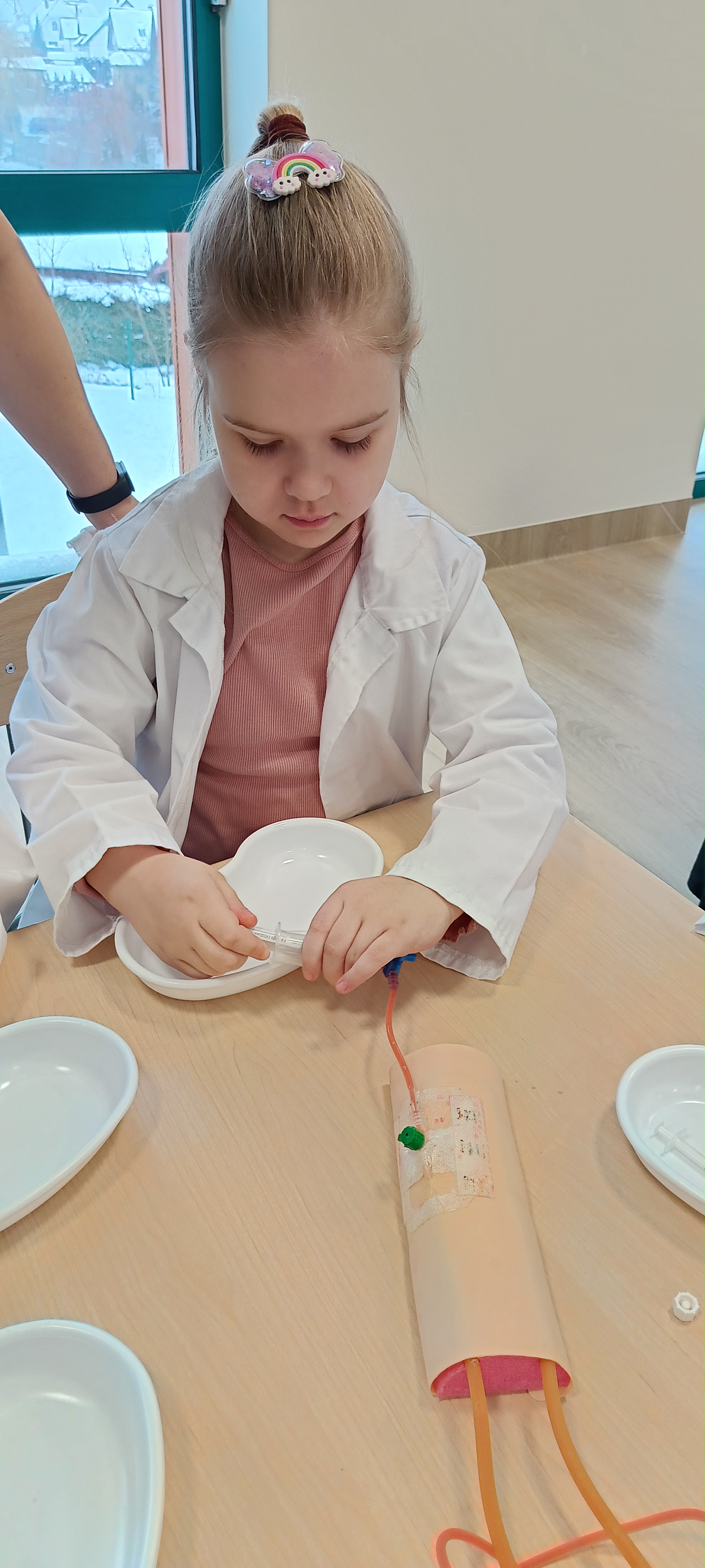 Dziś nasza grupa brała udział w warsztatach medycznych - pobieranie krwi. Bursztynki dowiedziały się czego używa się do pobierania krwi oraz jaka jest cała procedura przez wykonaniem zabiegu, później przeszli do zajęć praktycznych gdzie uczyły się pobierać krew do probówki oraz za pomocą strzykawki. Dzieci były zaangażowane i zadowolone z zajęć.