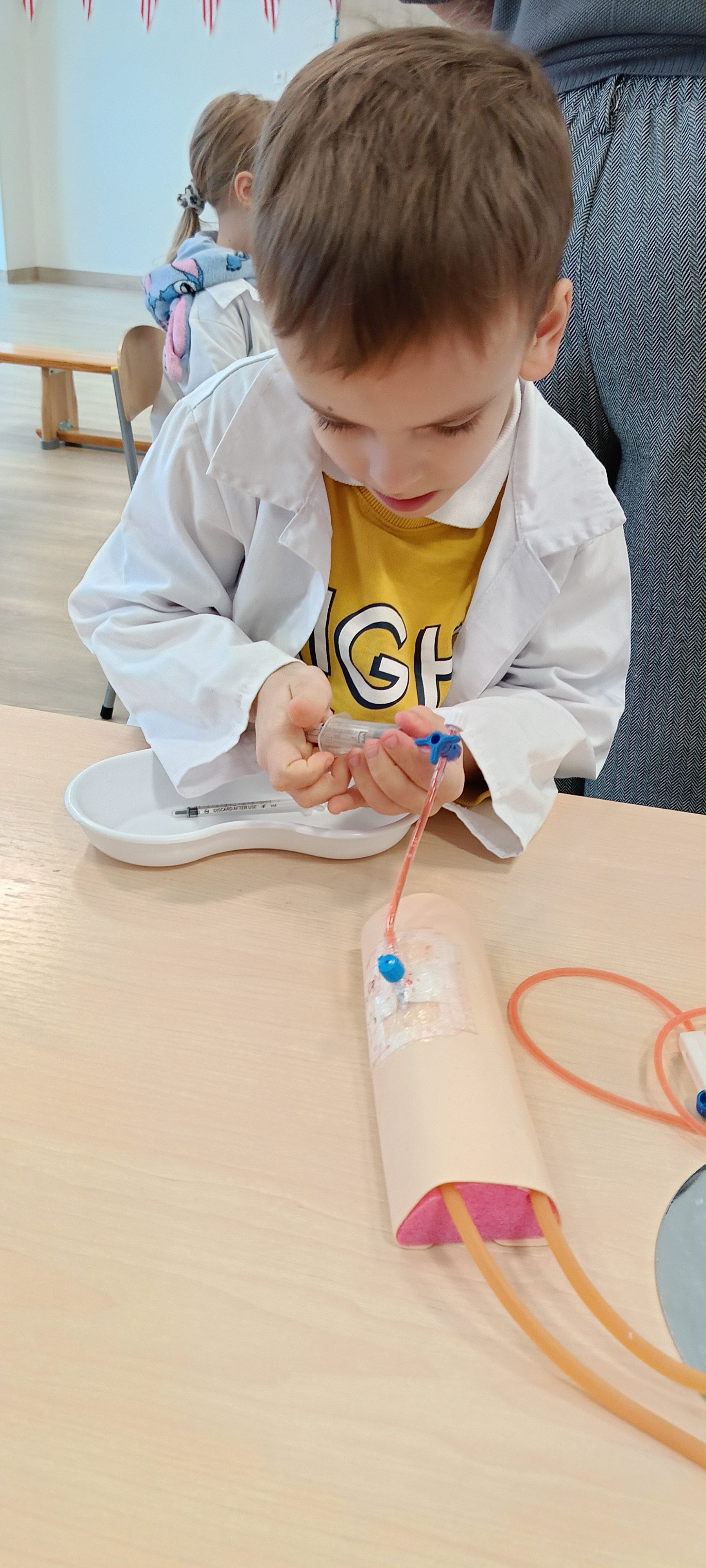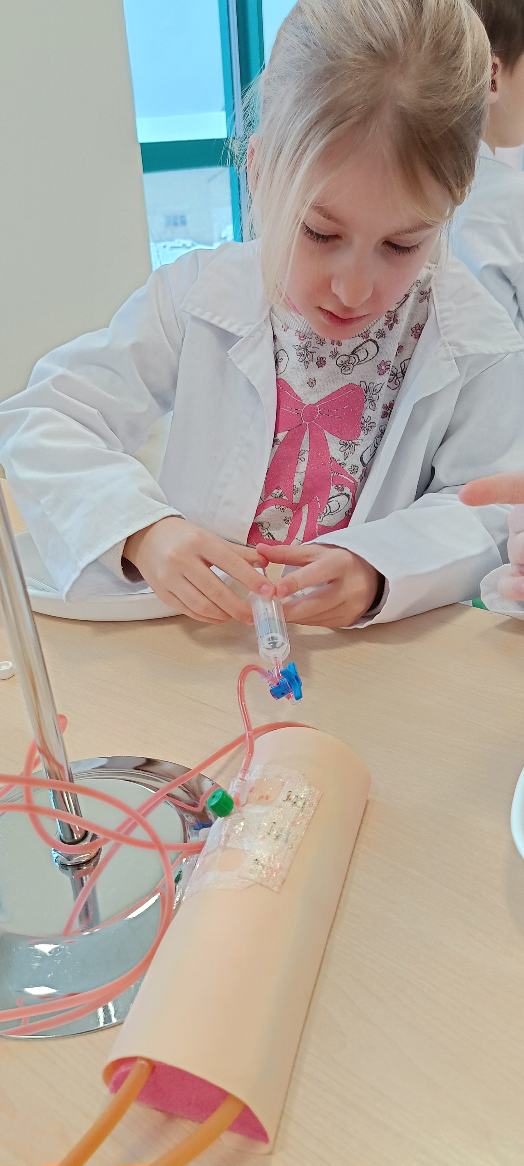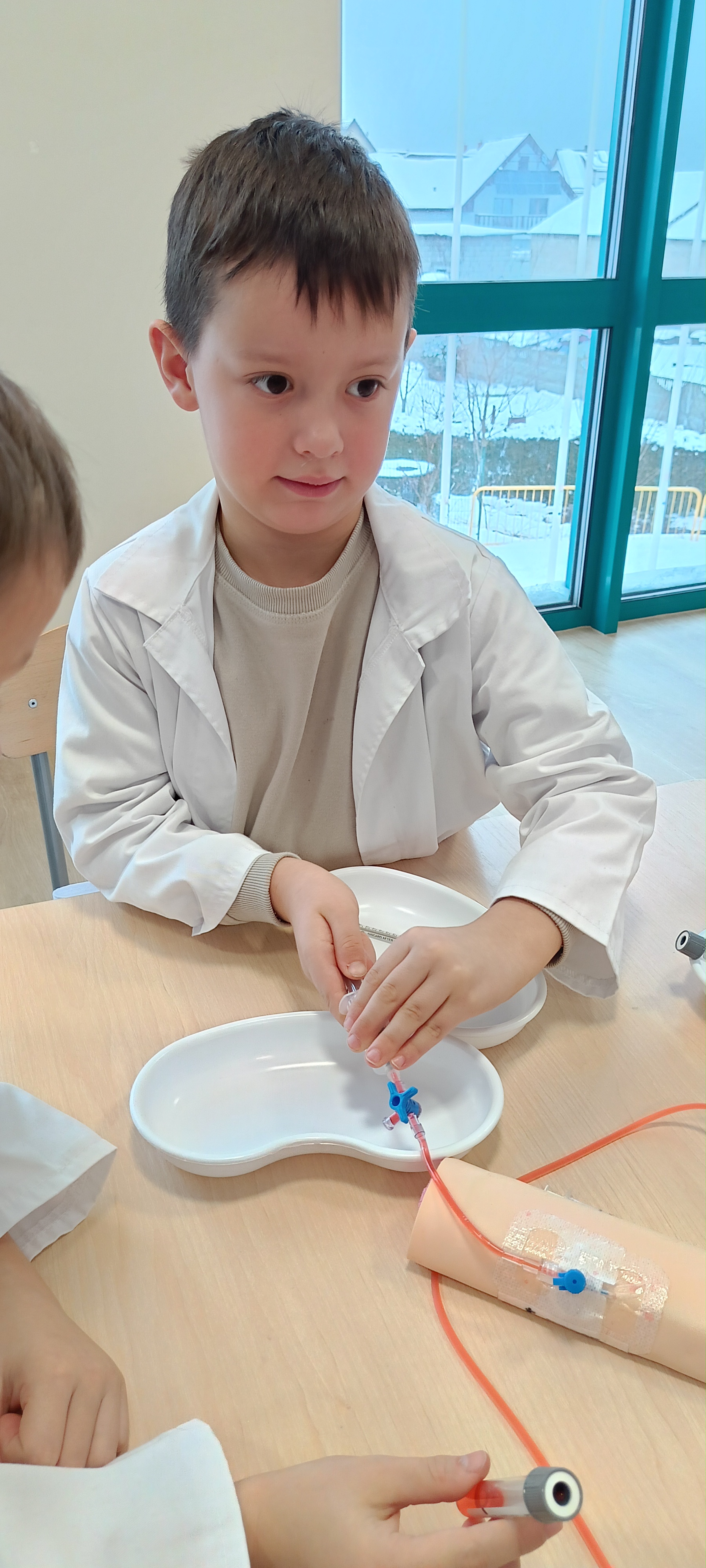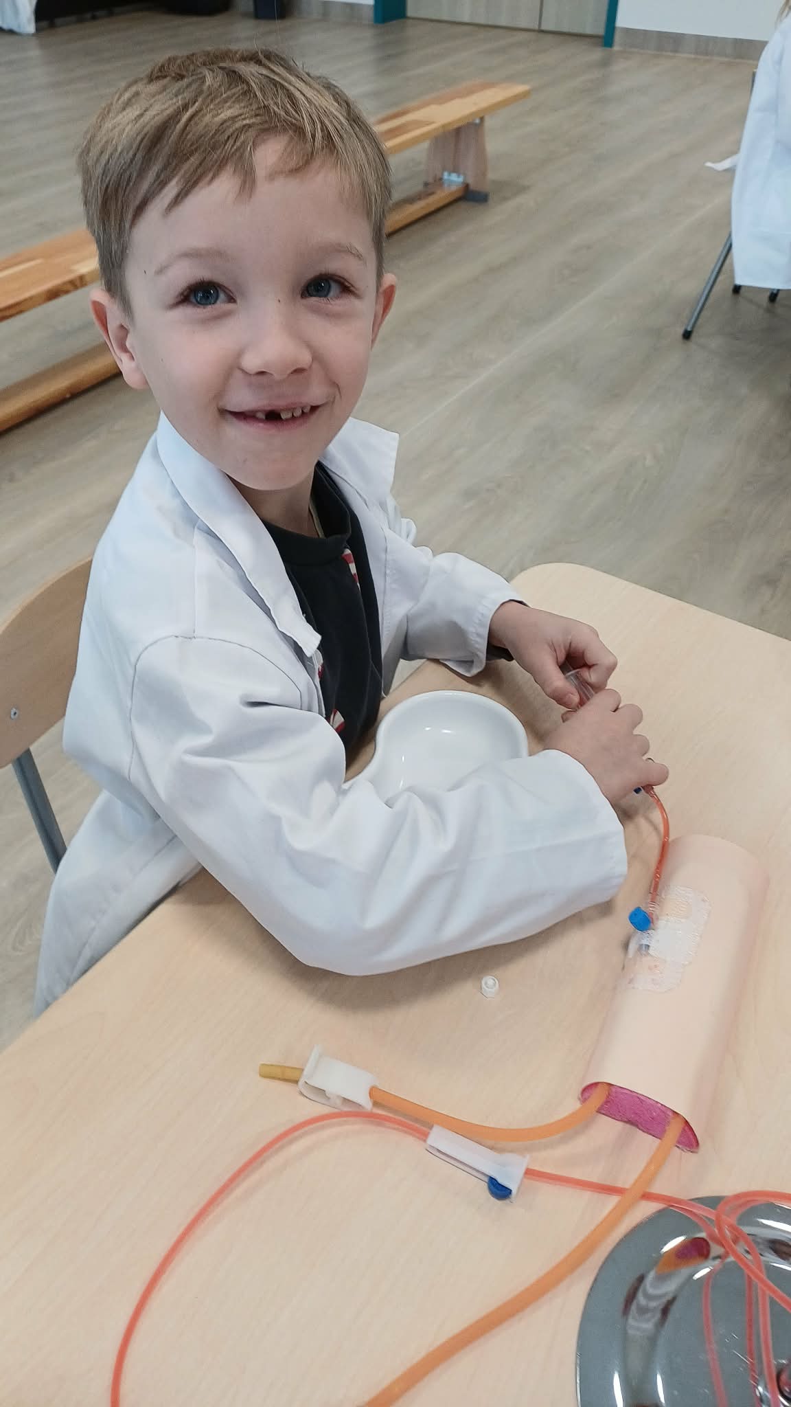Dziś nasza grupa brała udział w warsztatach medycznych - pobieranie krwi. Bursztynki dowiedziały się czego używa się do pobierania krwi oraz jaka jest cała procedura przez wykonaniem zabiegu, później przeszli do zajęć praktycznych gdzie uczyły się pobierać krew do probówki oraz za pomocą strzykawki. Dzieci były zaangażowane i zadowolone z zajęć.