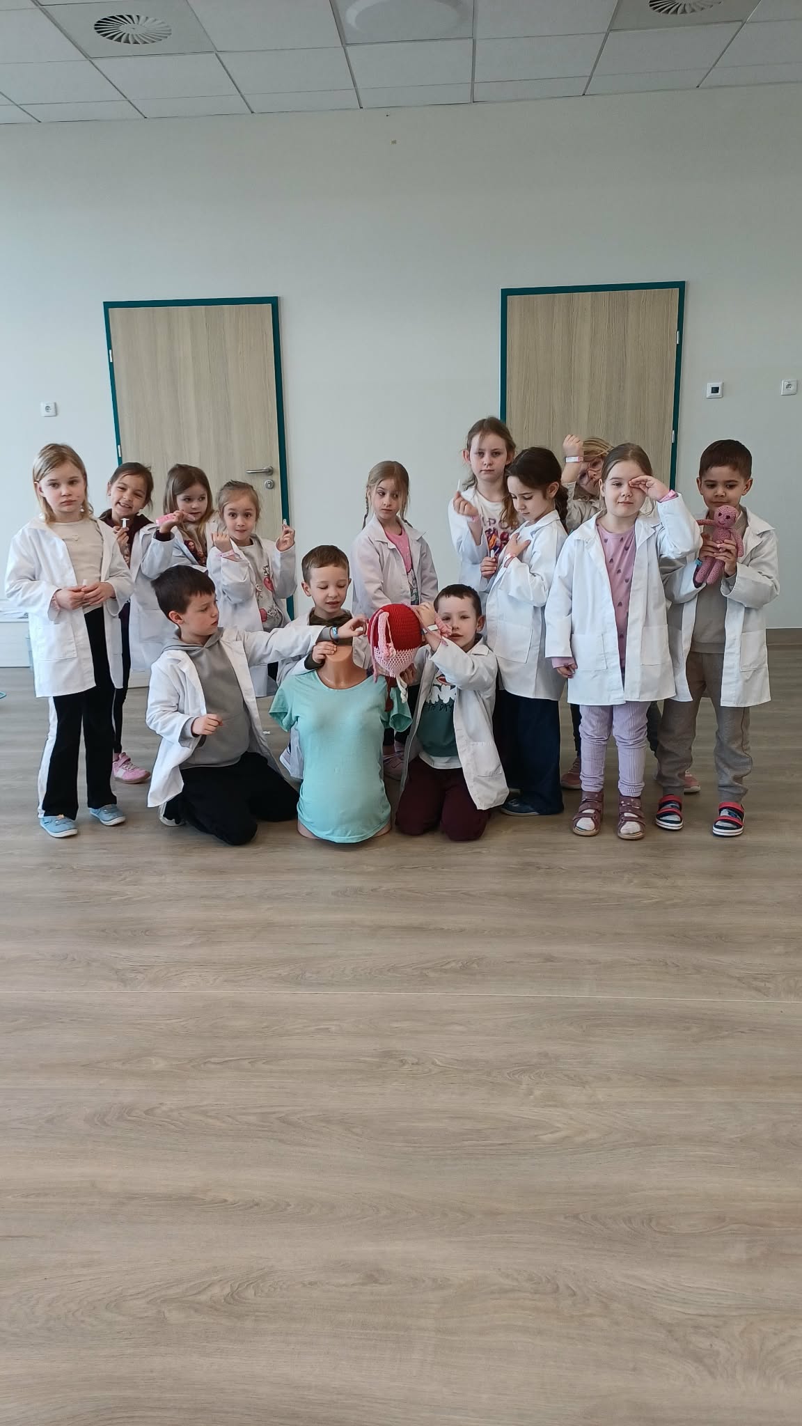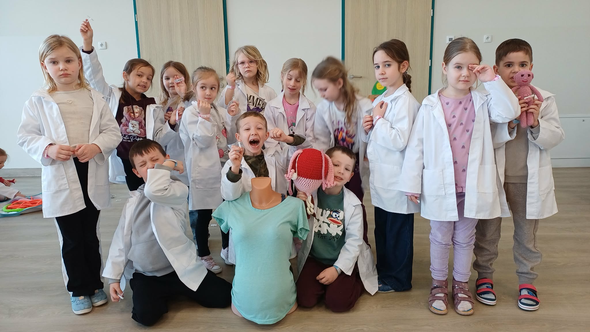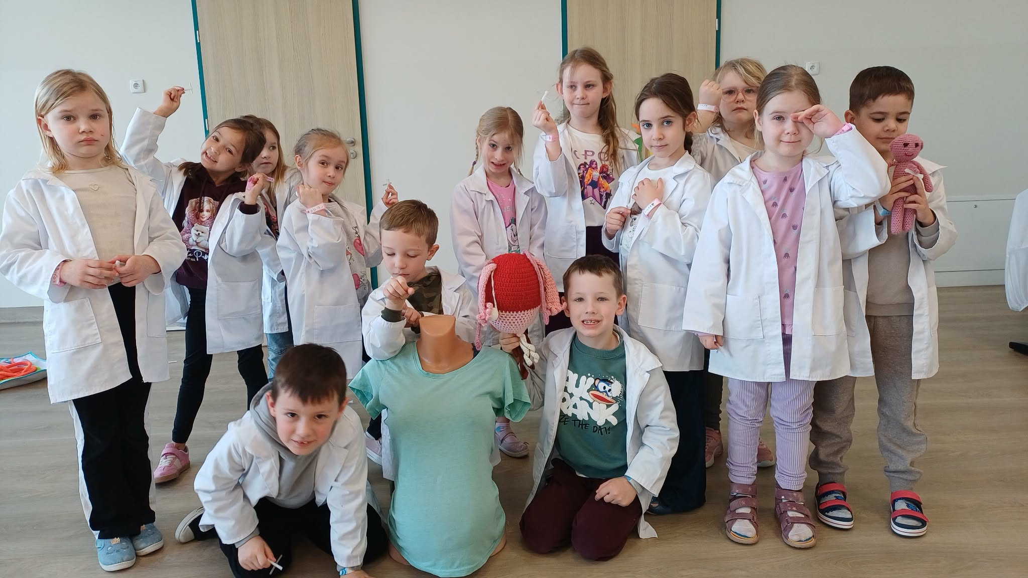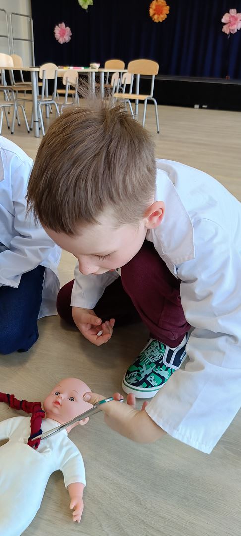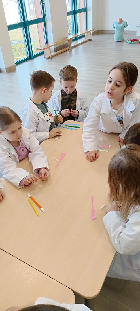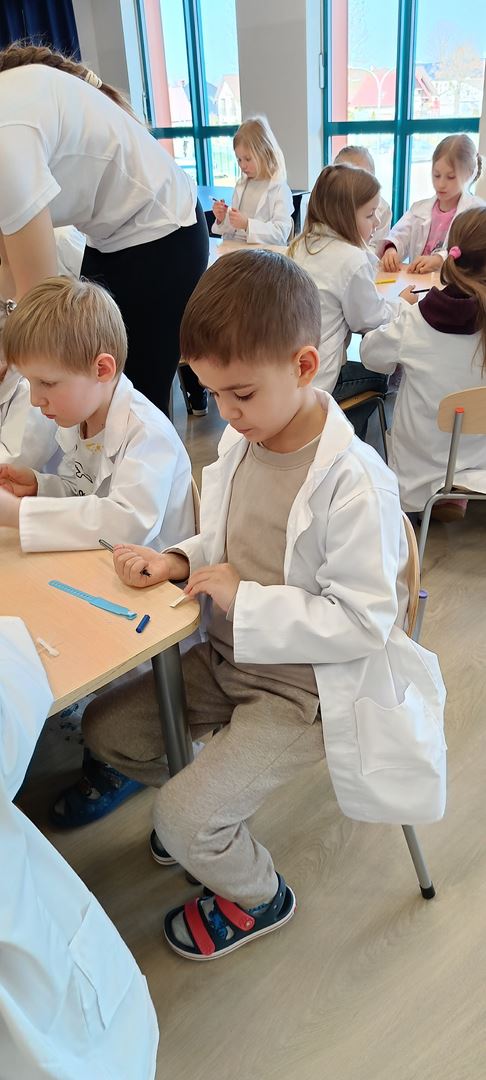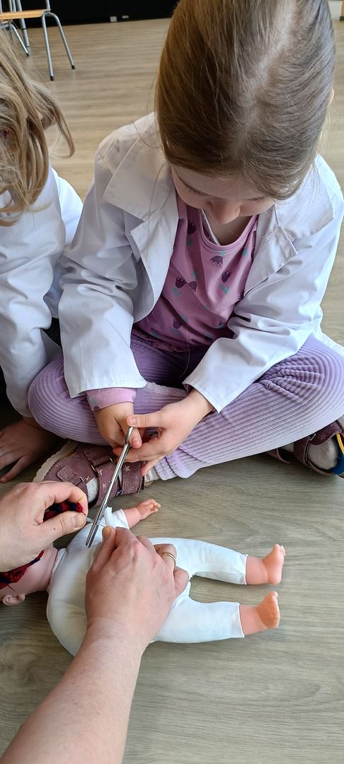 11 marca uczestniczyliśmy w warsztatach medycznych i dowiedzieliśmy skąd człowiek ma pępek. Pani dokładnie wyjaśniła nam jakie organy znajdują się w naszym organiźmie oraz jak rośnie dziecko w brzuchu kobiety. I na koniec Pani wytłumaczyła skąd wziął się pępek. Wytłumaczyła czym jest pępowina i że to od niej mamy pępek. Dzieci miały okazję przeciąć pępowinę, założyć klamerkę zabezpieczająca i podpisać bransoletkę poporodową. Zajęcia były przeprowadzone w bardzo naturalny, swobodny i ciekawy sposób.