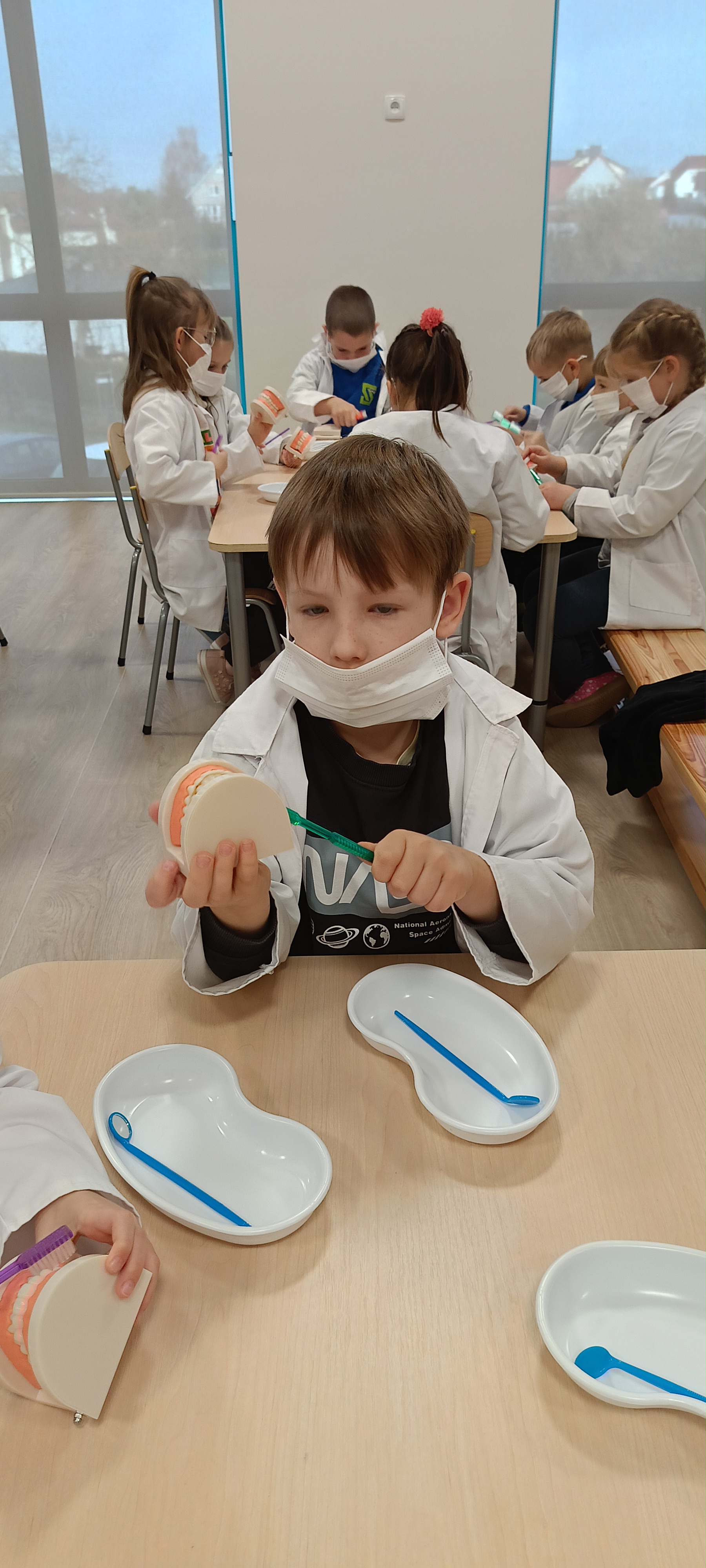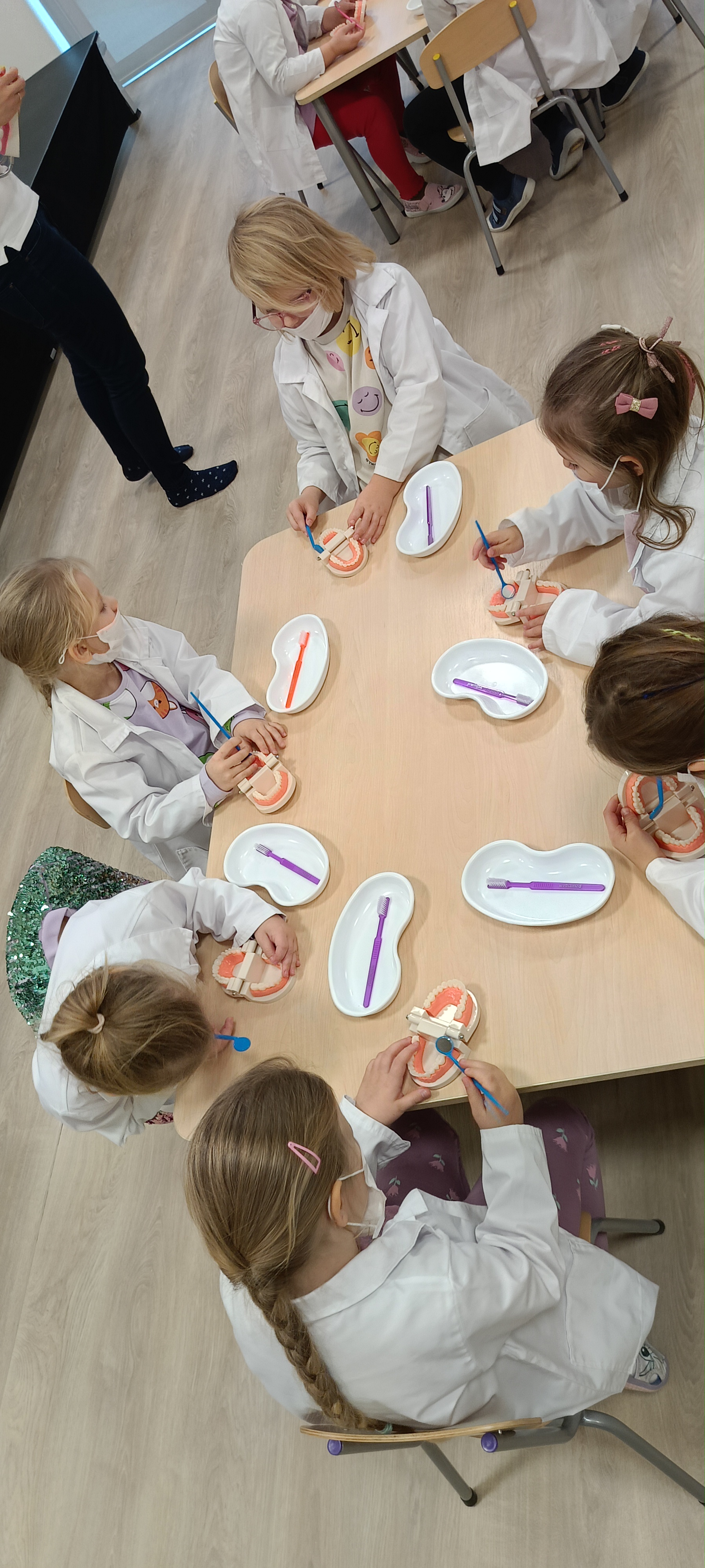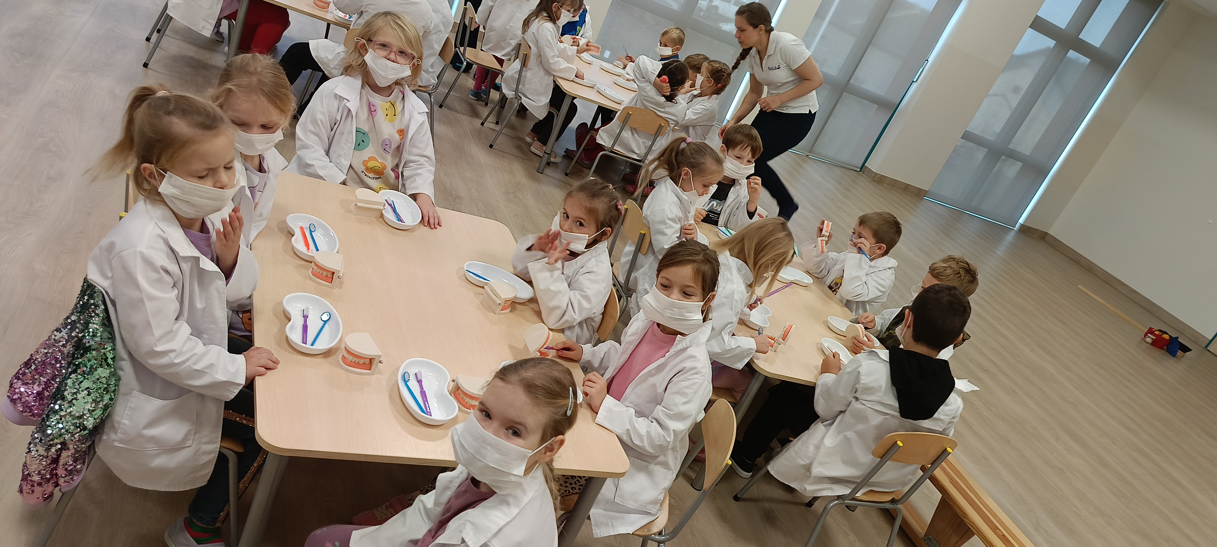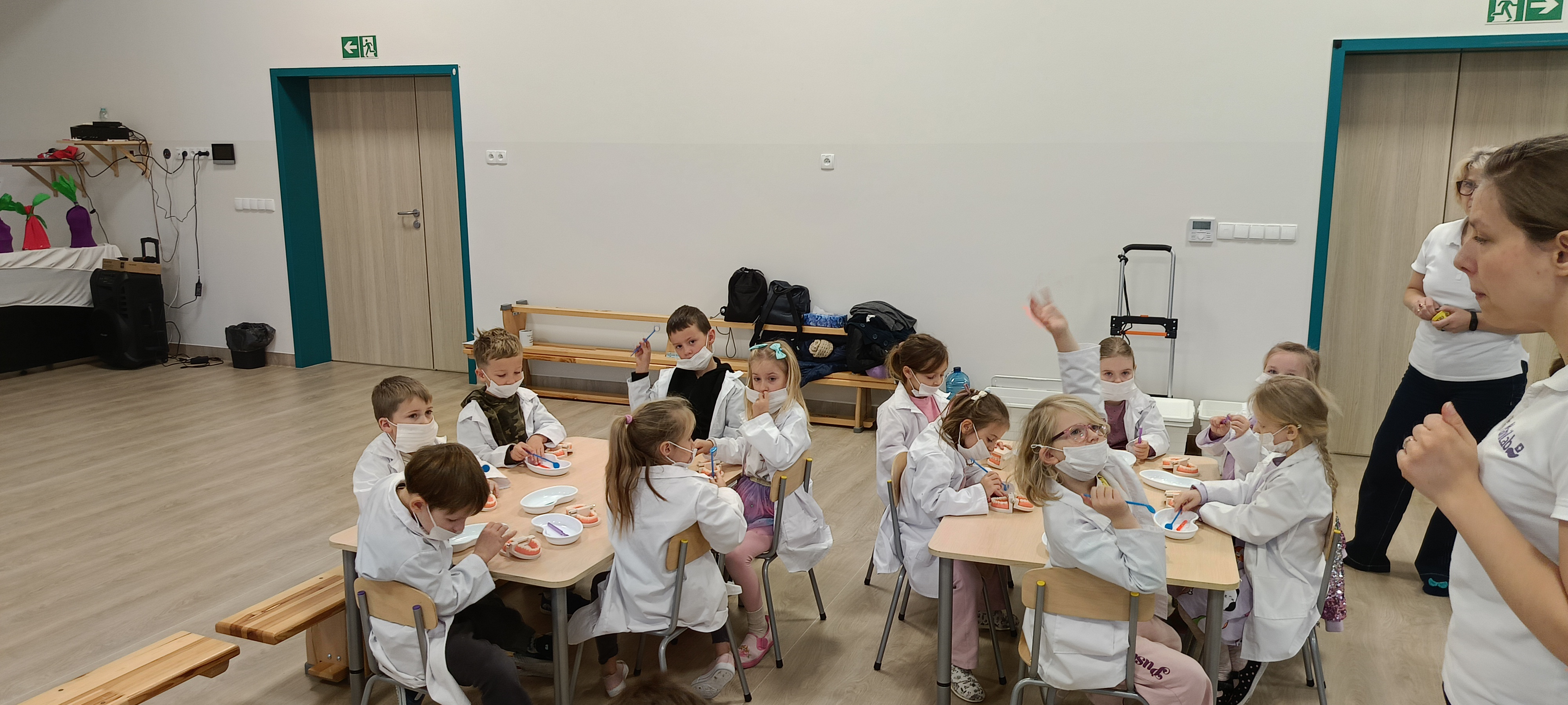 Na warsztatach medycznych, bursztynki dowiedzieli się wszystkiego o zębach, z czego są stworzone, jak je dokładnie myć, ile ich mają dzieci a ile dorośli a nawet uczyli się zakładać plomby. Dzieci były bardzo zaangażowane i czynnie brały udział.
