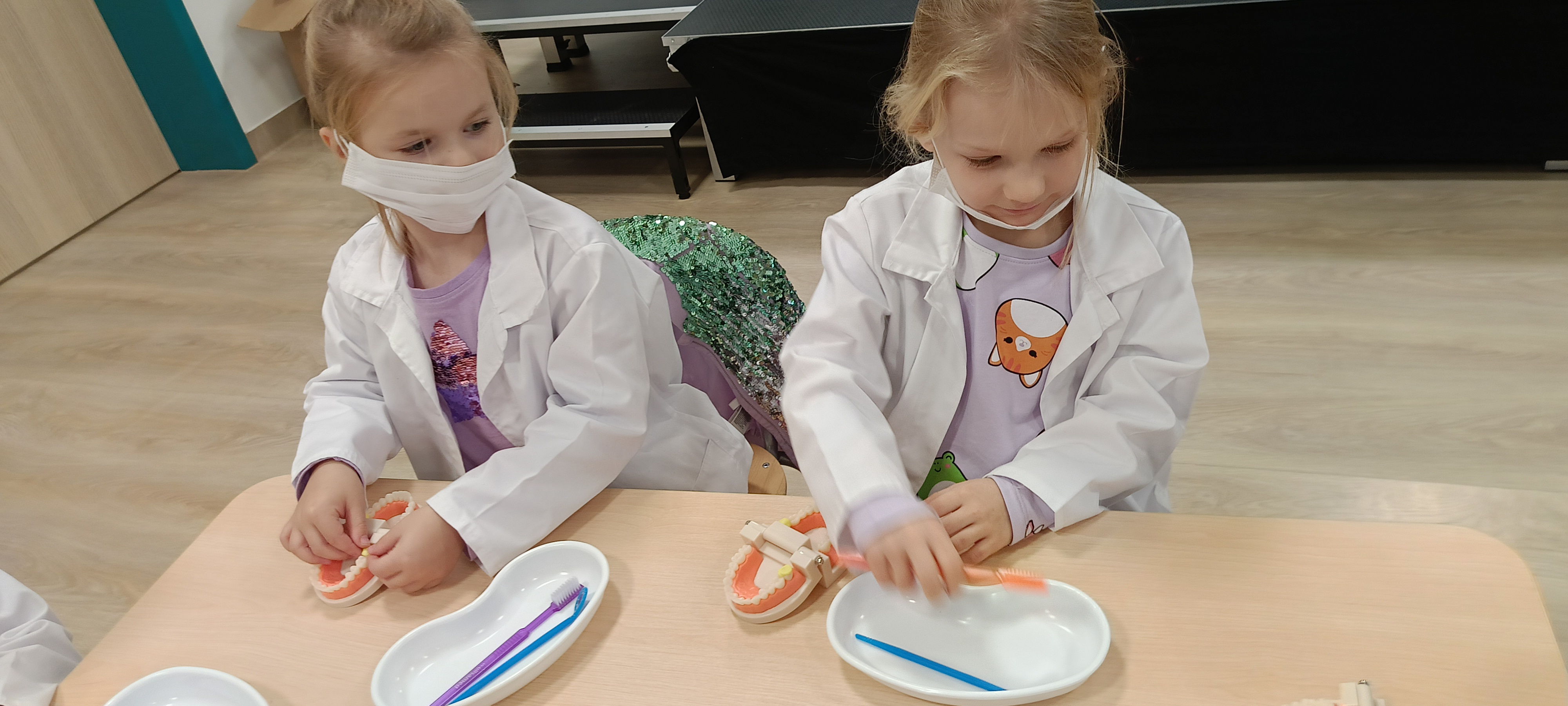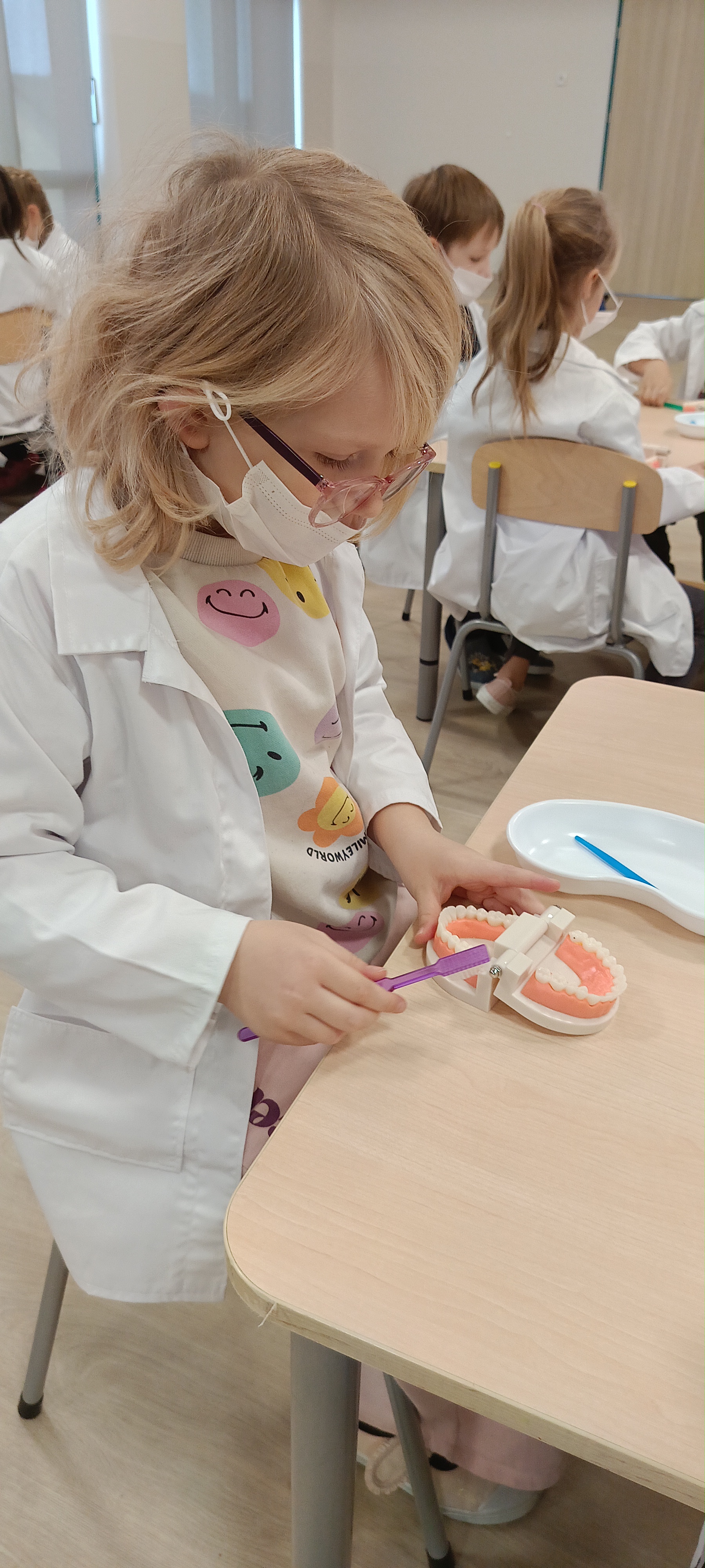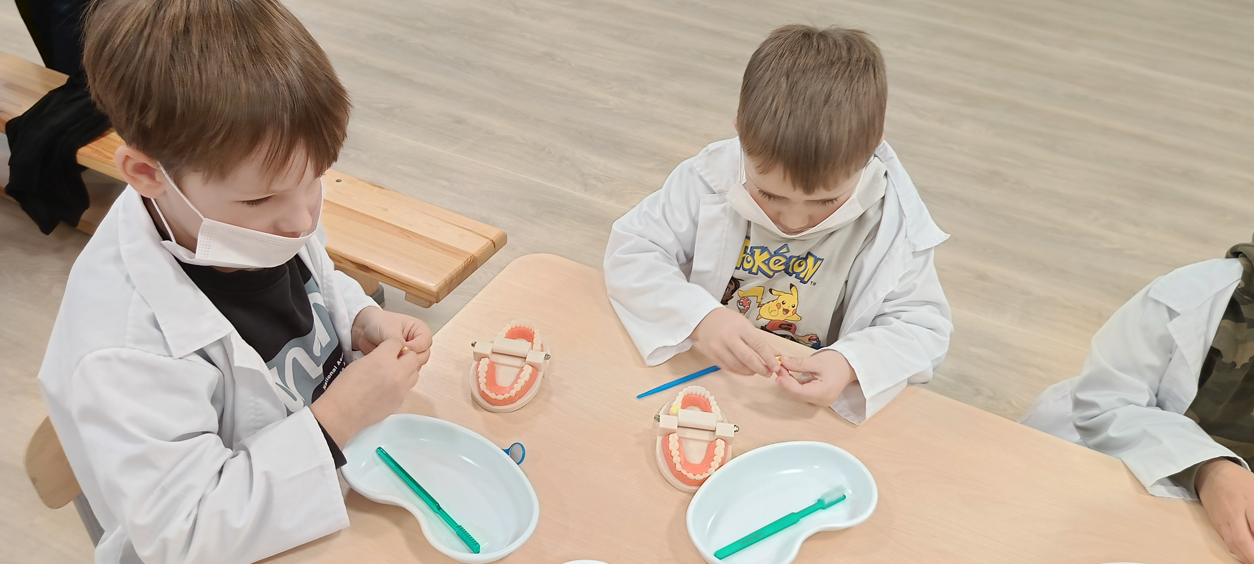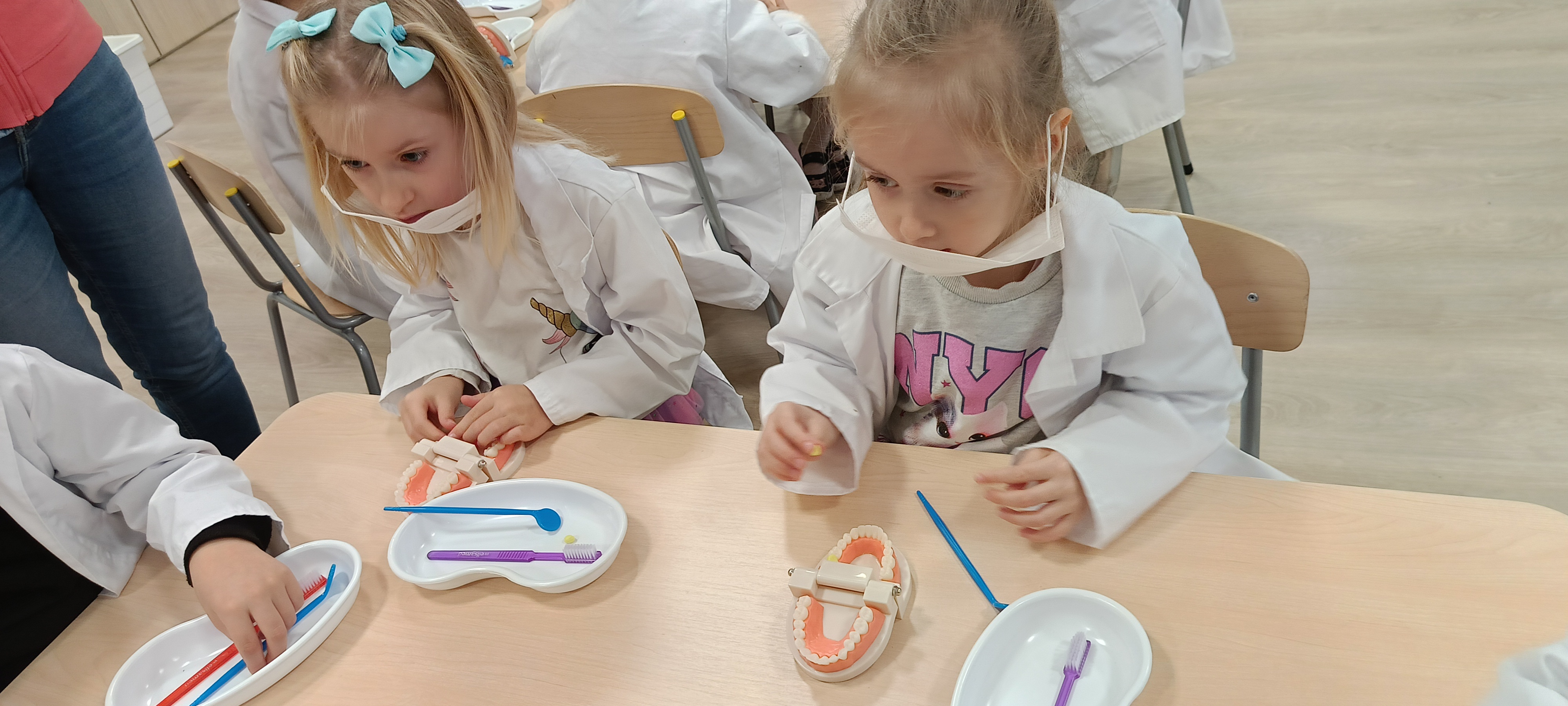 Na warsztatach medycznych, bursztynki dowiedzieli się wszystkiego o zębach, z czego są stworzone, jak je dokładnie myć, ile ich mają dzieci a ile dorośli a nawet uczyli się zakładać plomby. Dzieci były bardzo zaangażowane i czynnie brały udział.