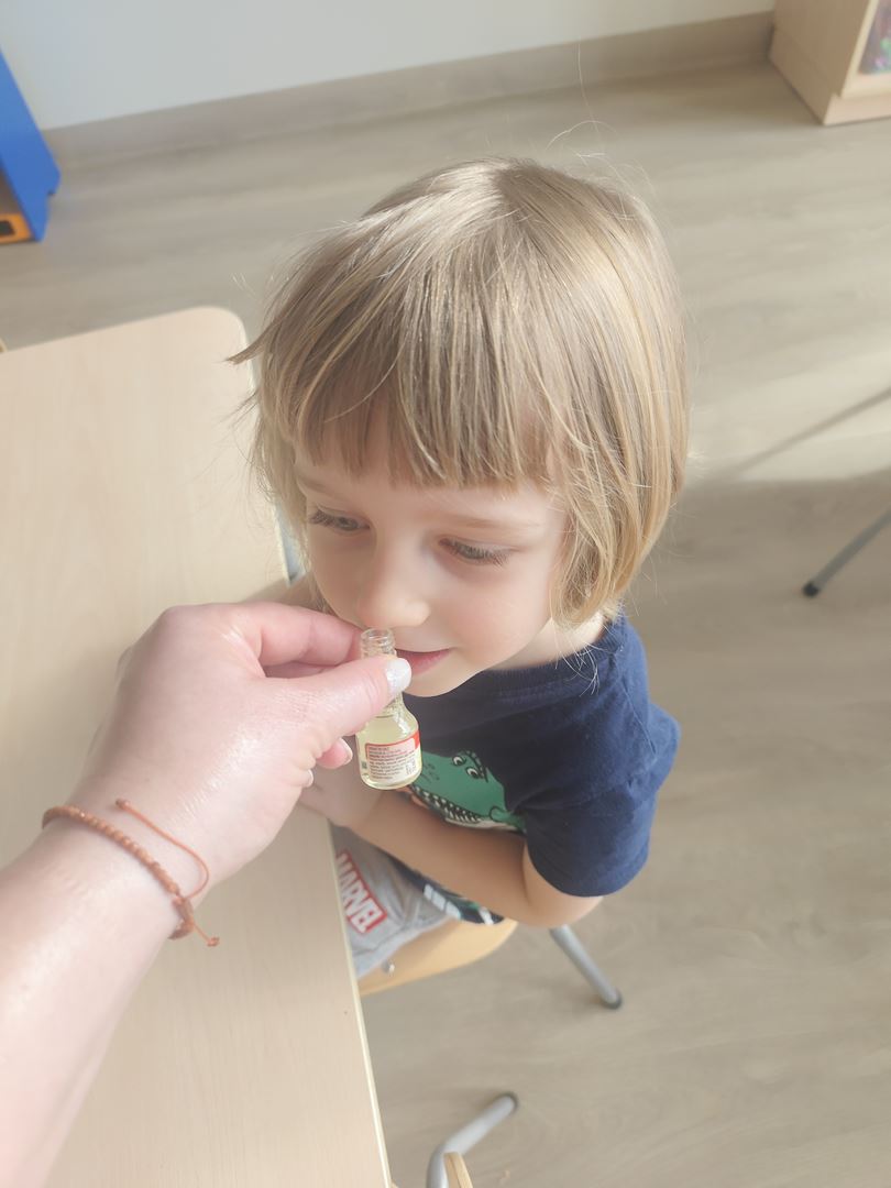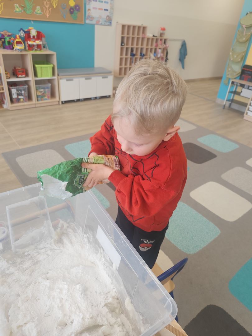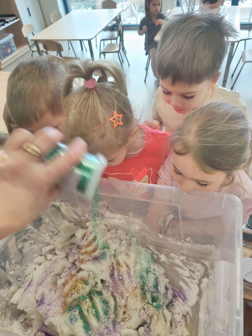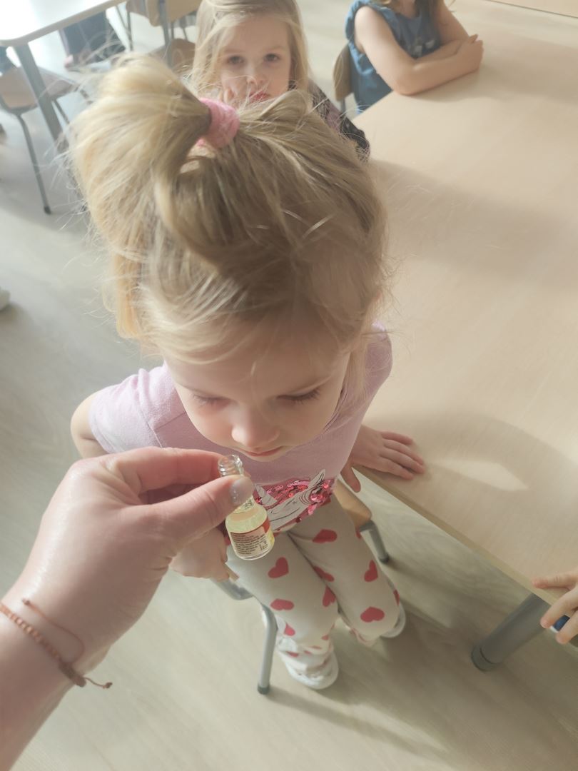 W pierwszym dniu tygodnia tematu " Jak poznajemy świat ?" razem z dziećmi stworzyliśmy brokatową, pachnącą wanilią masę sensoryczną .